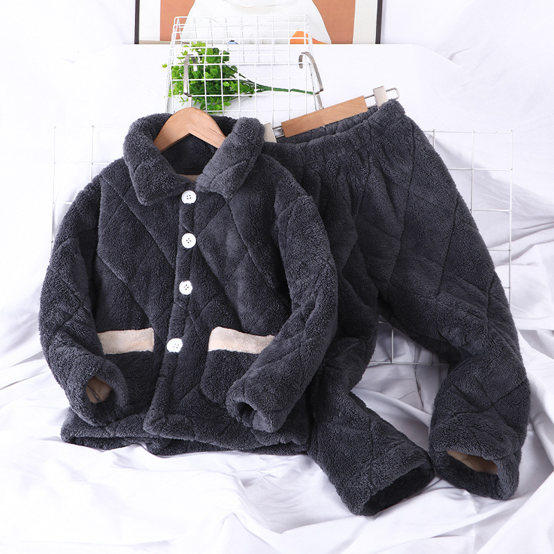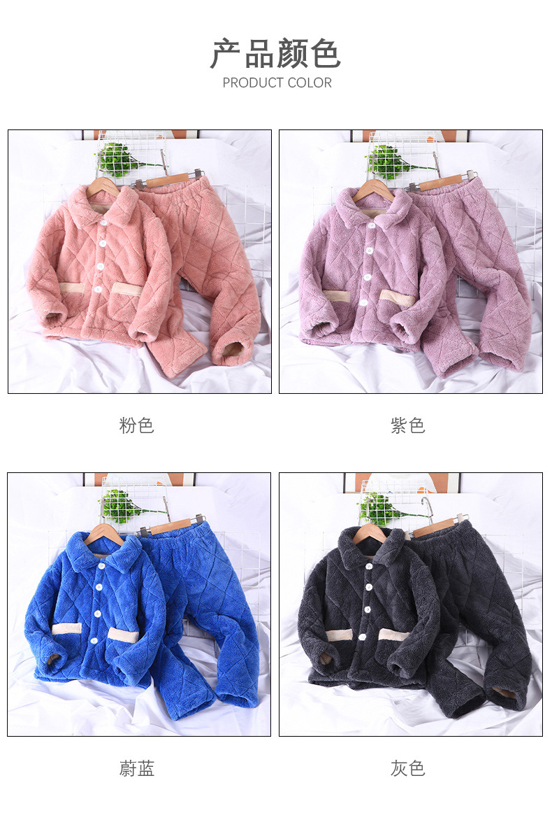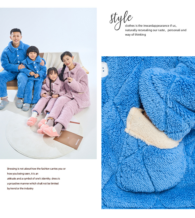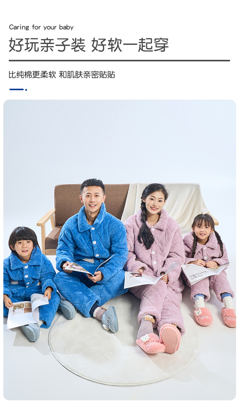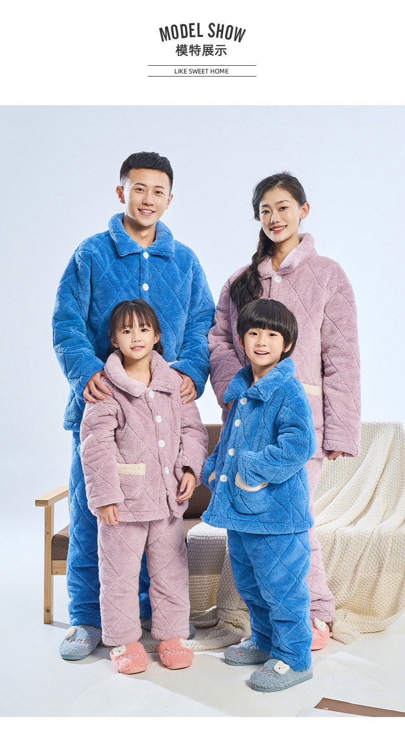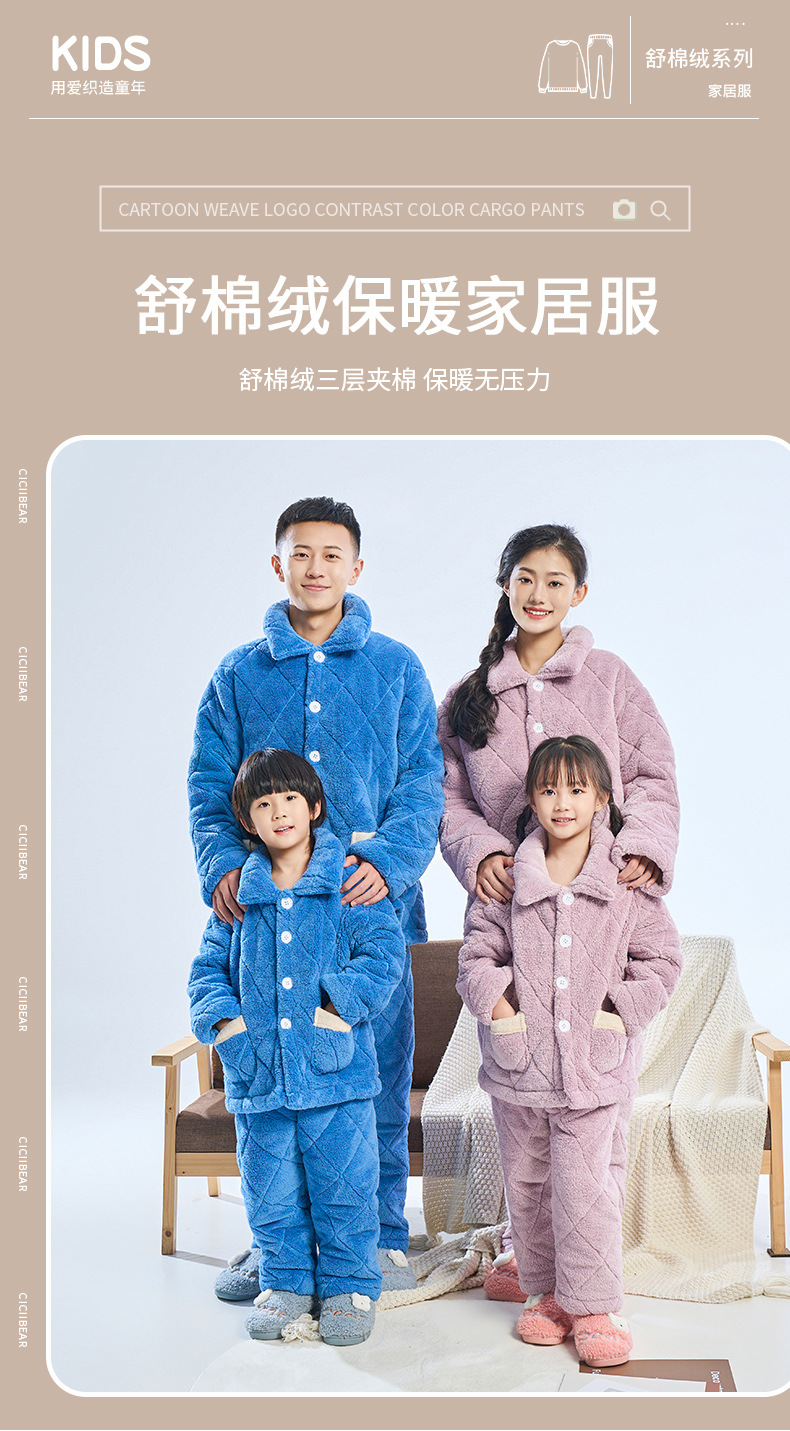 가을과 겨울 세트 어린이 잠옷 두꺼운 부모-자식 성인 착용 소년 소녀 가정복 세트 겨울스토어 가기