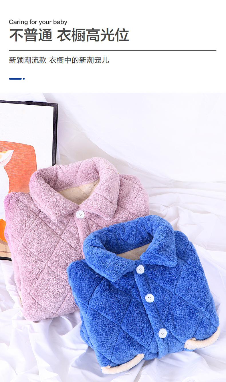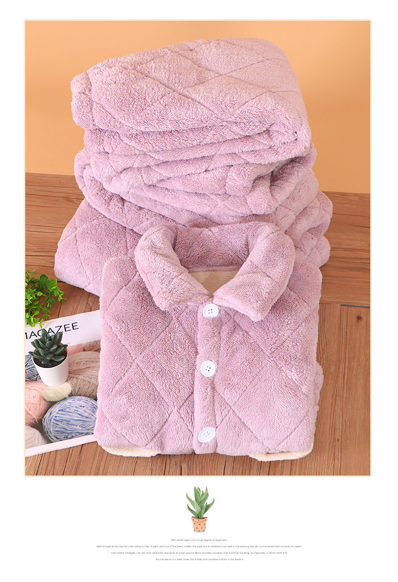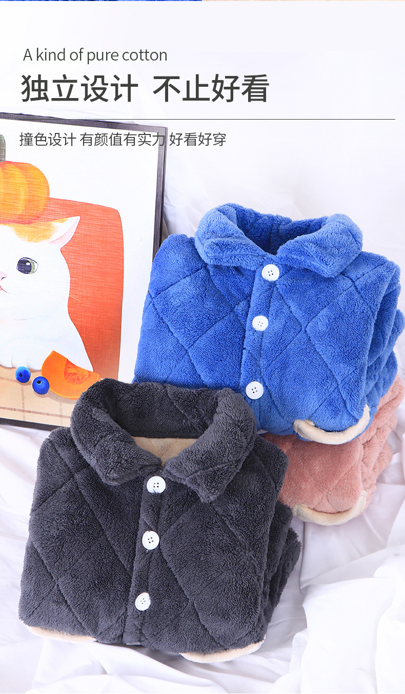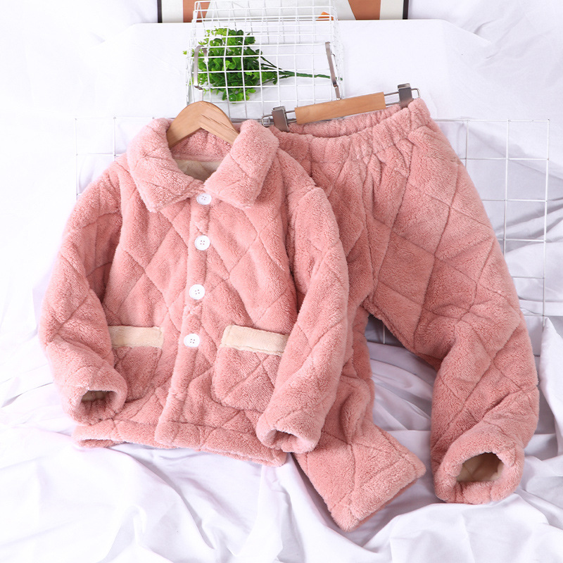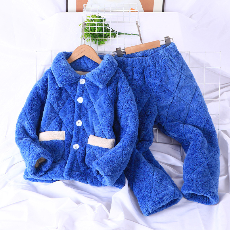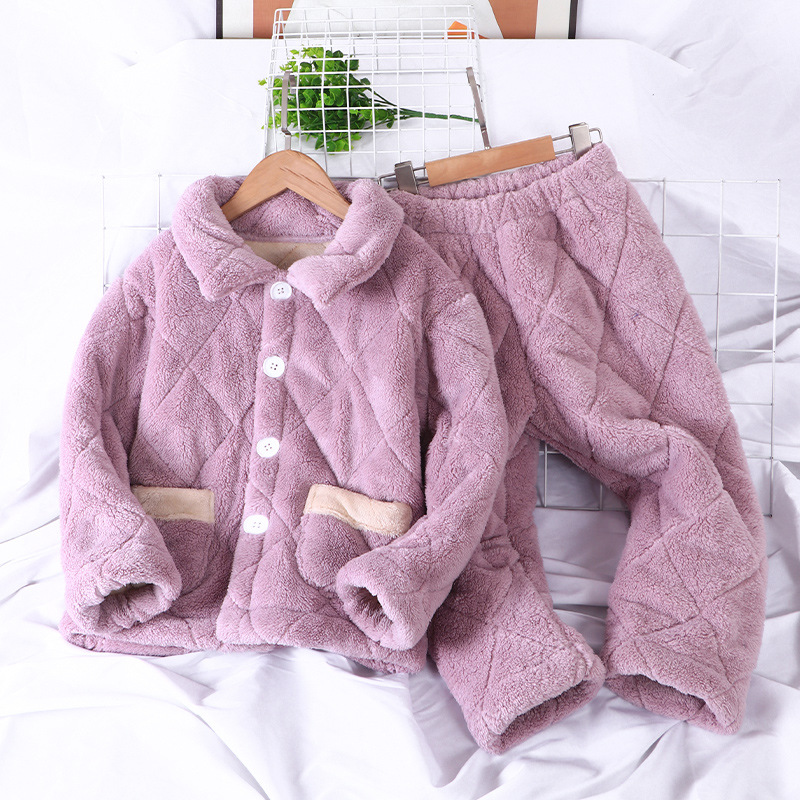 가을과 겨울 세트 어린이 잠옷 두꺼운 부모-자식 성인 착용 소년 소녀 가정복 세트 겨울스토어 가기