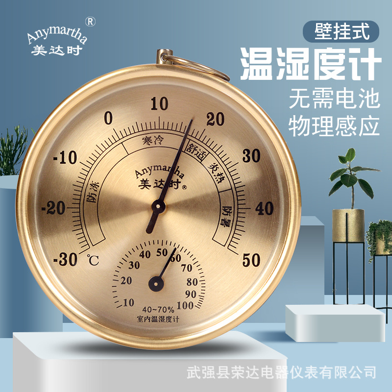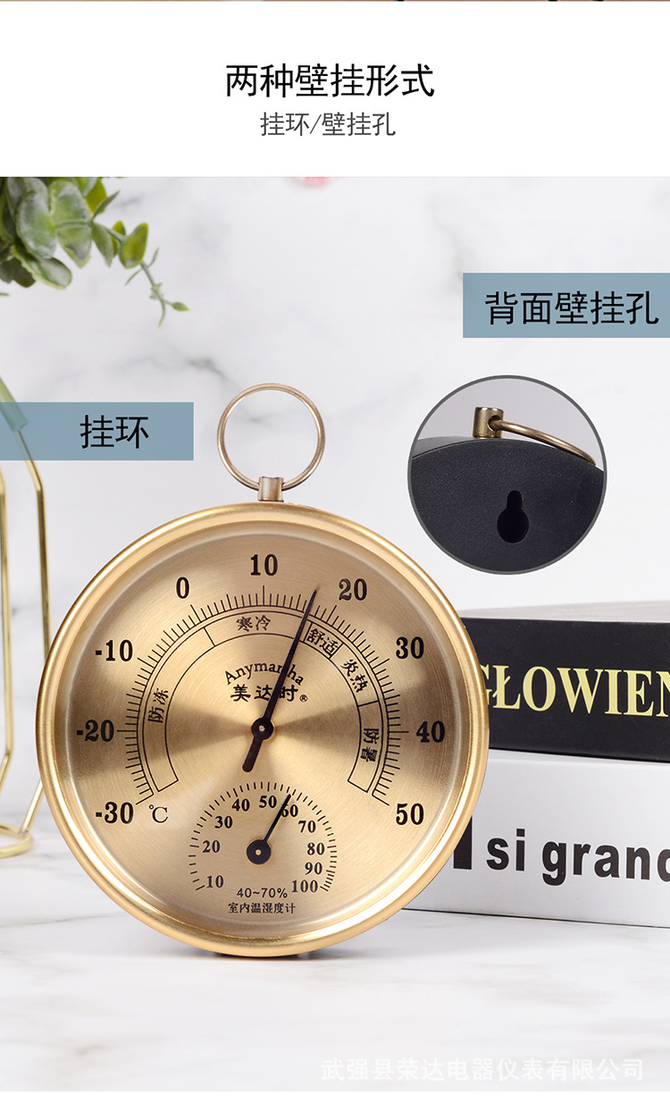 온도 및 습도 측정기 고정밀 가정용 온도 및 습도 측정기 금속 다이얼 사무실 거실 매달려 이중 목적 포인팅 시계스토어 가기