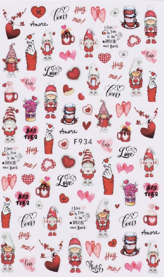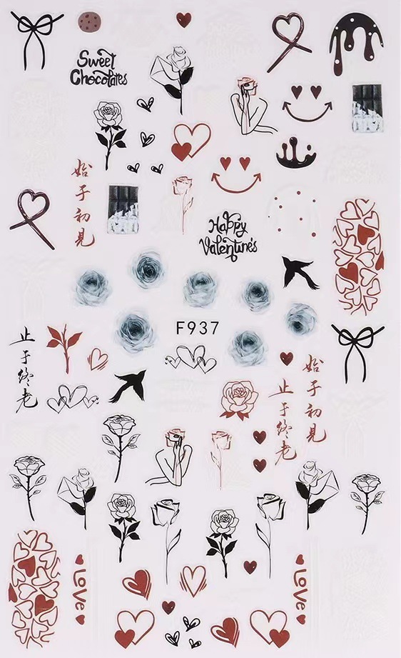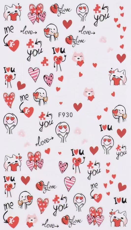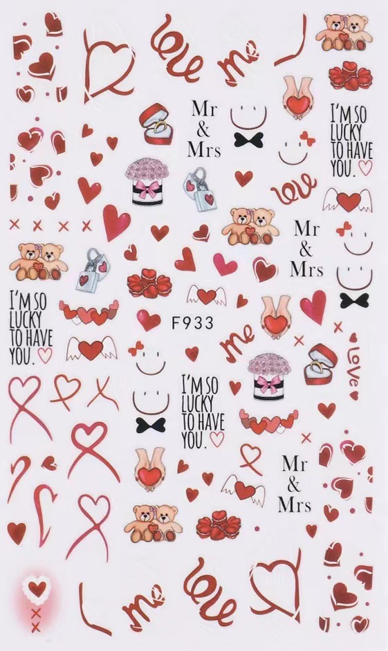 2023 국경 간 공급 네일 아트 스티커 발렌타인 데이 작은 사람들의 마음보다 사랑 곰 빨간 입술 접착제 포장