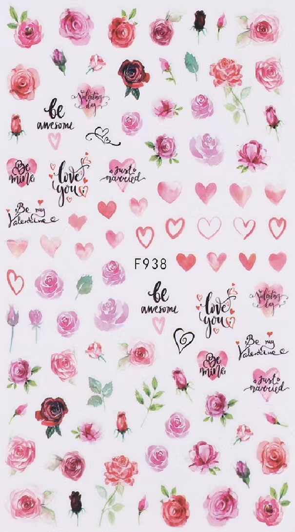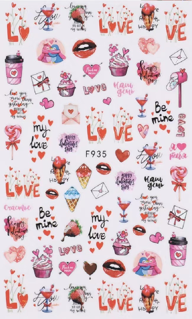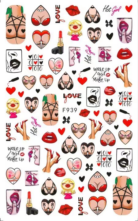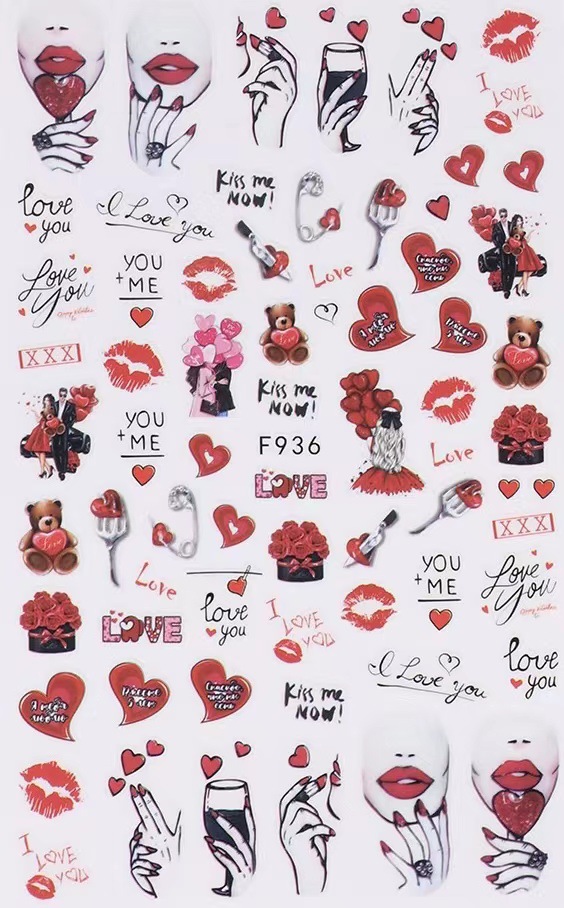 2023 국경 간 공급 네일 아트 스티커 발렌타인 데이 작은 사람들의 마음보다 사랑 곰 빨간 입술 접착제 포장스토어 가기