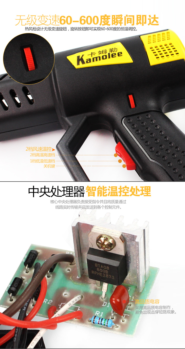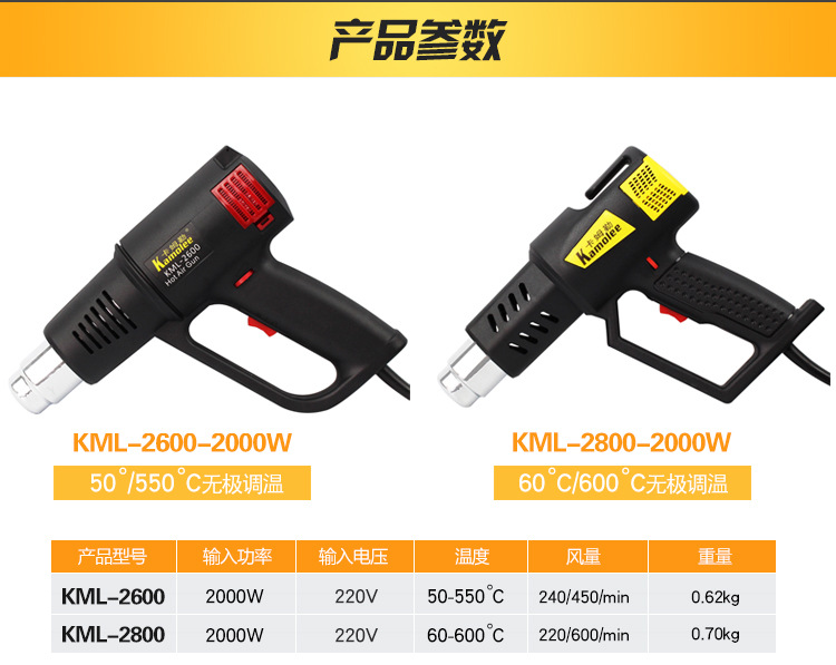 캠러 뜨거운 공기 총 뜨거운 공기 튜브 송풍기 온도 조절 베이킹 건 총 필름 열 수축 필름 자동차 필름 KML2600
