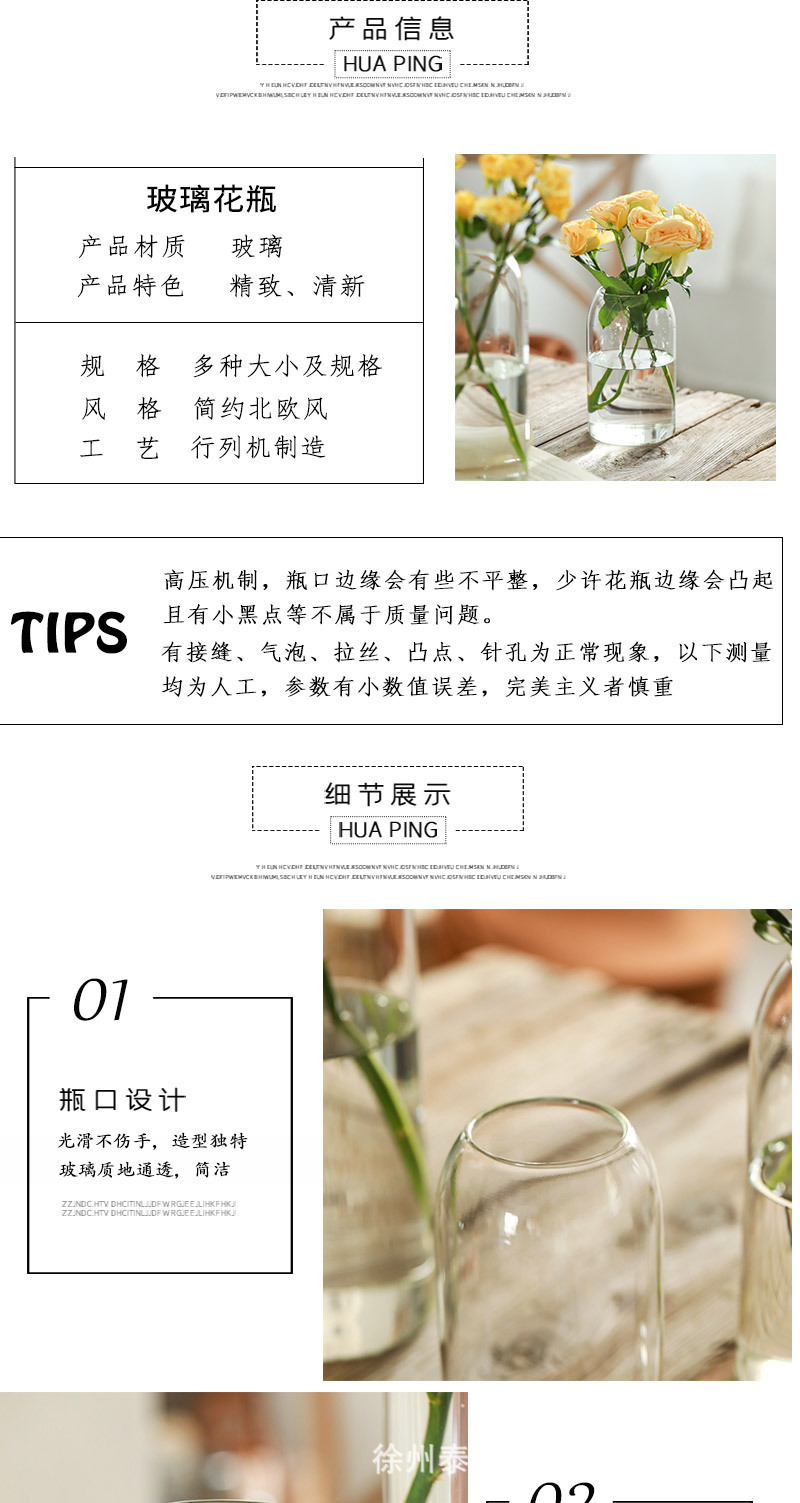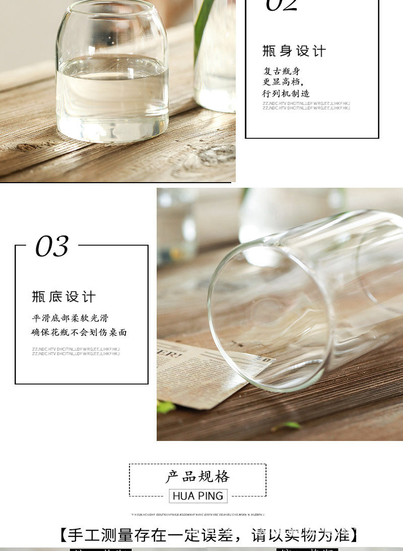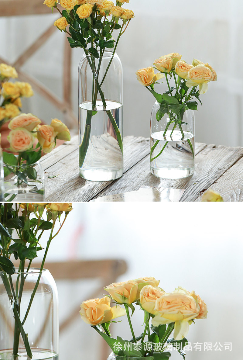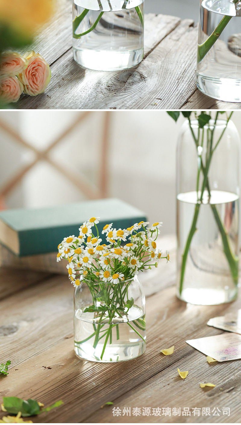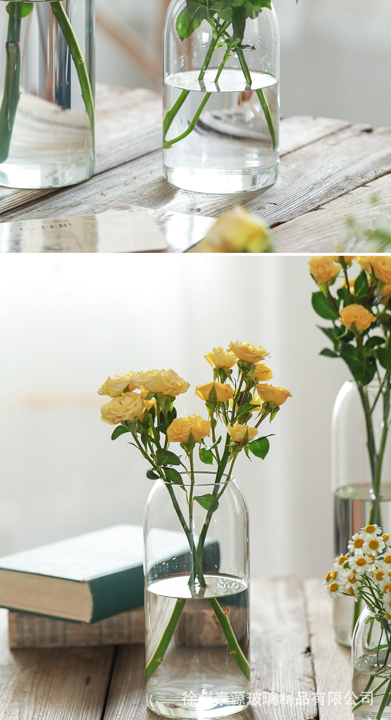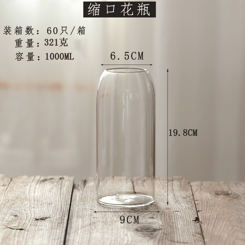 인 스타일 투명 유리 꽃병 목 수경 꽃 식물 꽃꽂이 거실 장식 도매