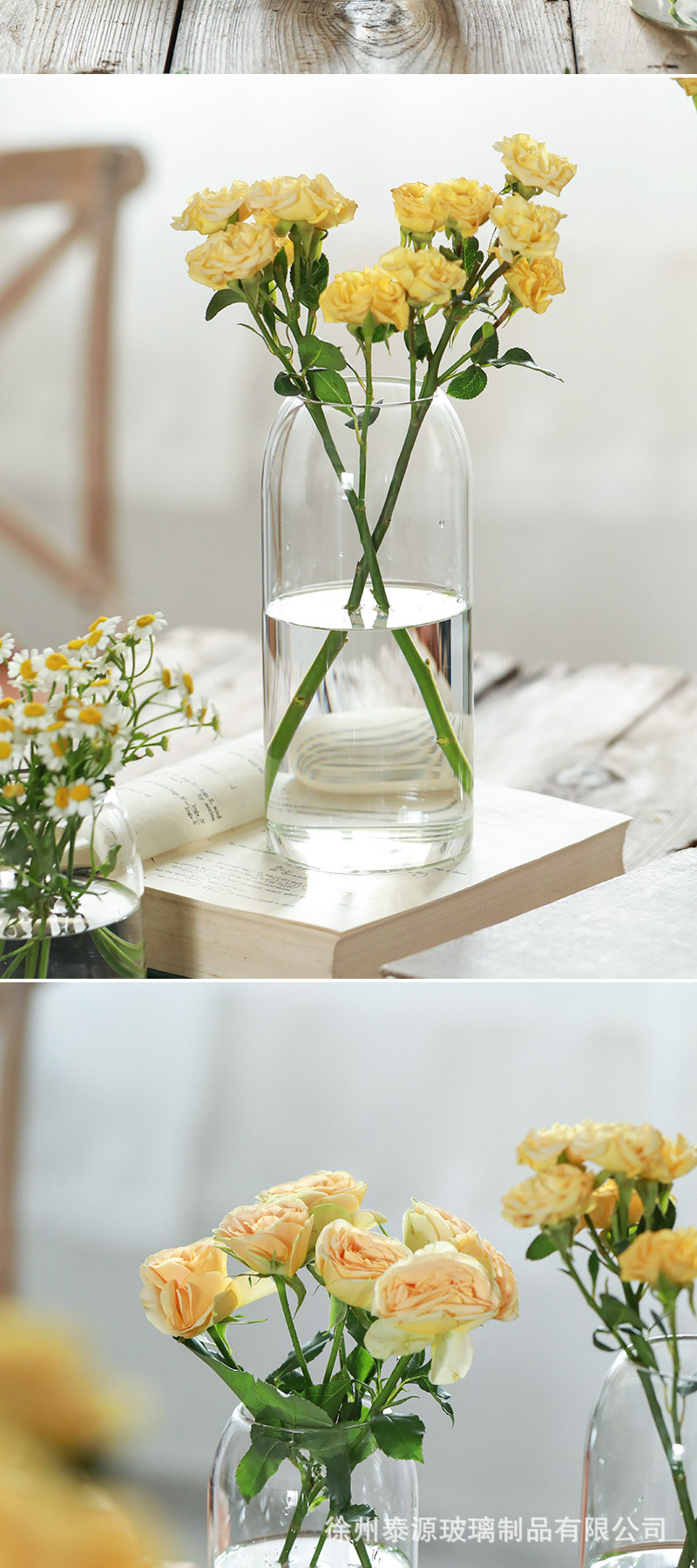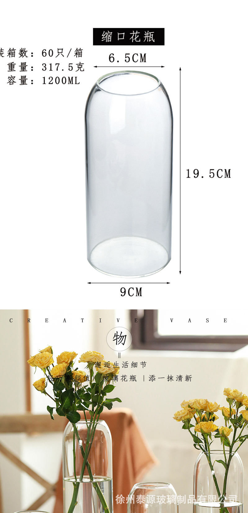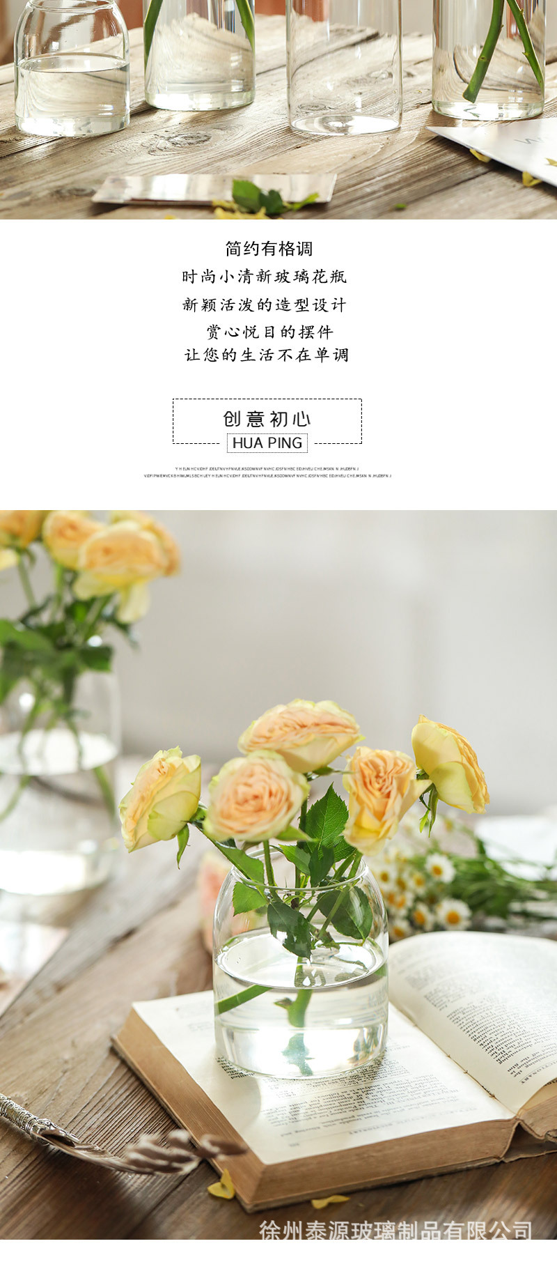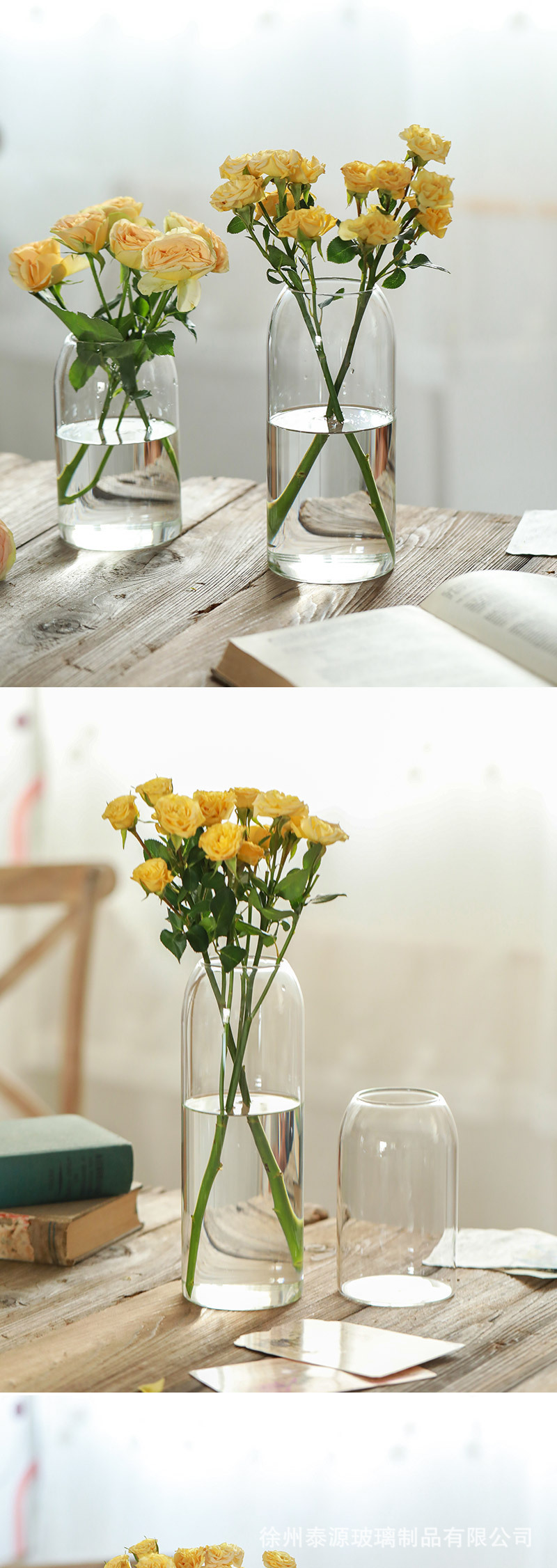 인 스타일 투명 유리 꽃병 목 수경 꽃 식물 꽃꽂이 거실 장식 도매