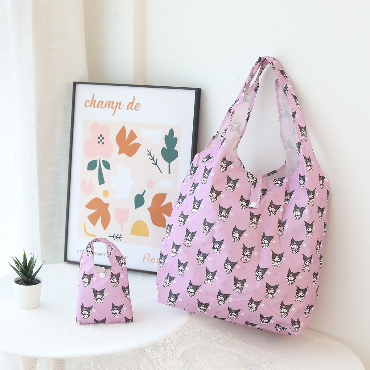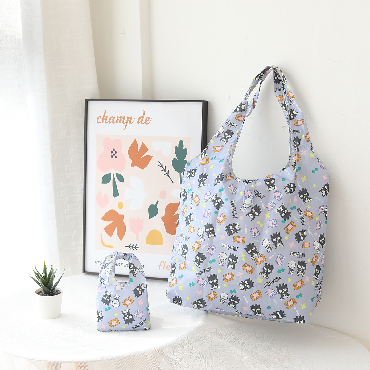 새로운 접이식 방수 인쇄 쇼핑백 210D 격자 무늬 환경 보호 가방 2 in 1 쇼핑백 만화 보관 가방