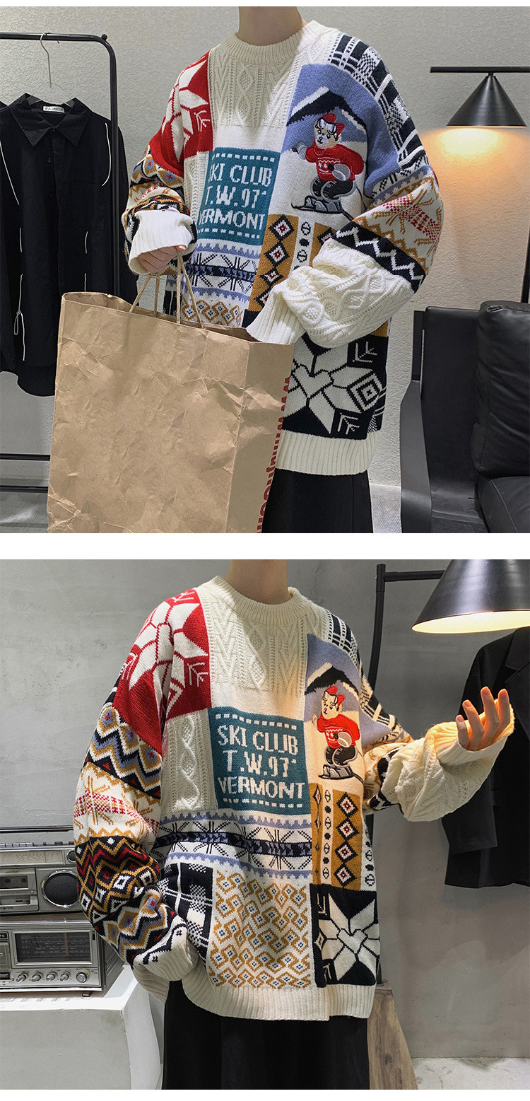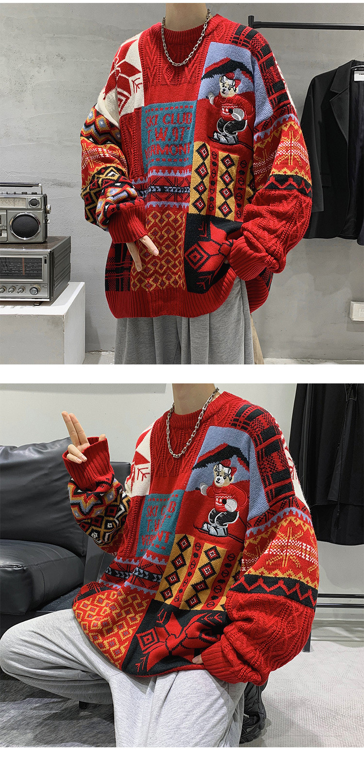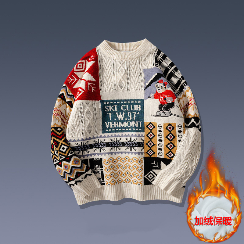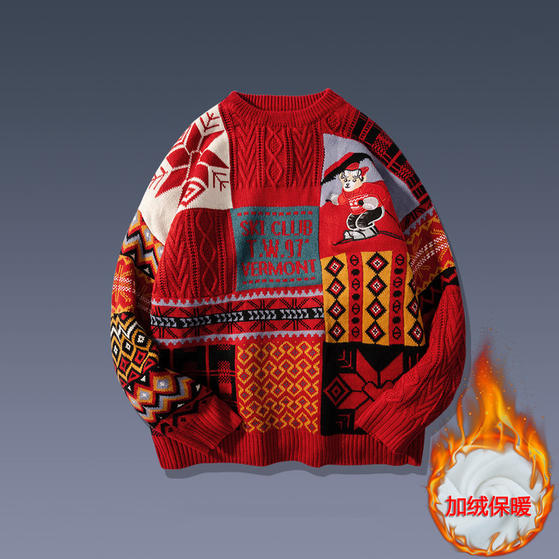 홍콩 스타일 내셔널 타이드 커플 스웨터 겨울 기모 조수 코트의 두꺼운 따뜻한 니트 셔츠
