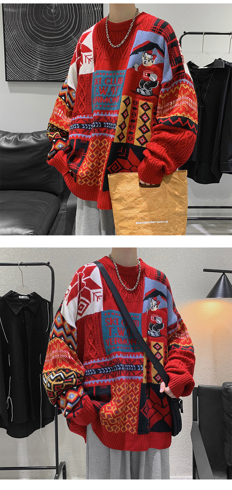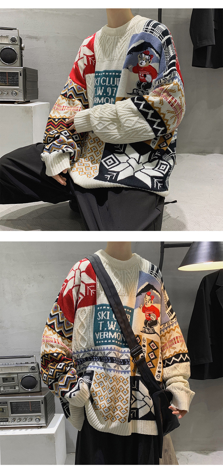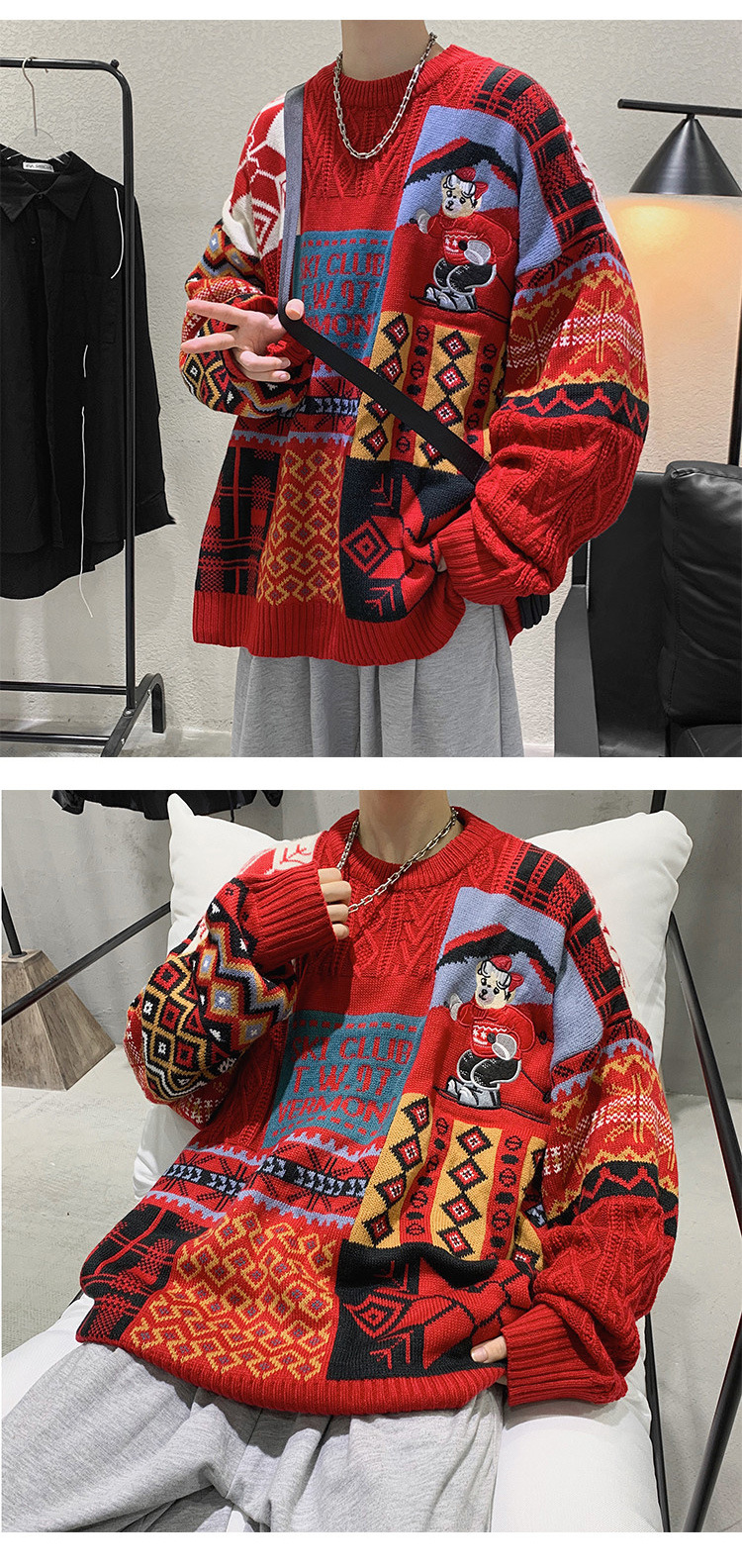 홍콩 스타일 내셔널 타이드 커플 스웨터 겨울 기모 조수 코트의 두꺼운 따뜻한 니트 셔츠