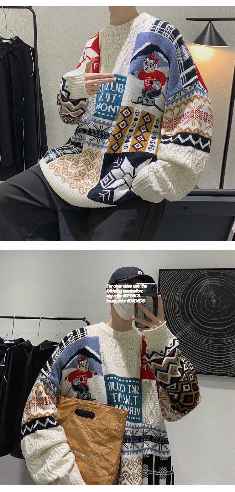 홍콩 스타일 내셔널 타이드 커플 스웨터 겨울 기모 조수 코트의 두꺼운 따뜻한 니트 셔츠스토어 가기