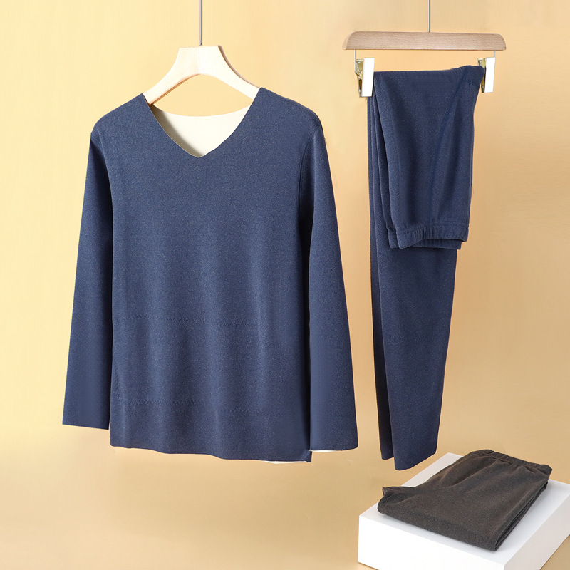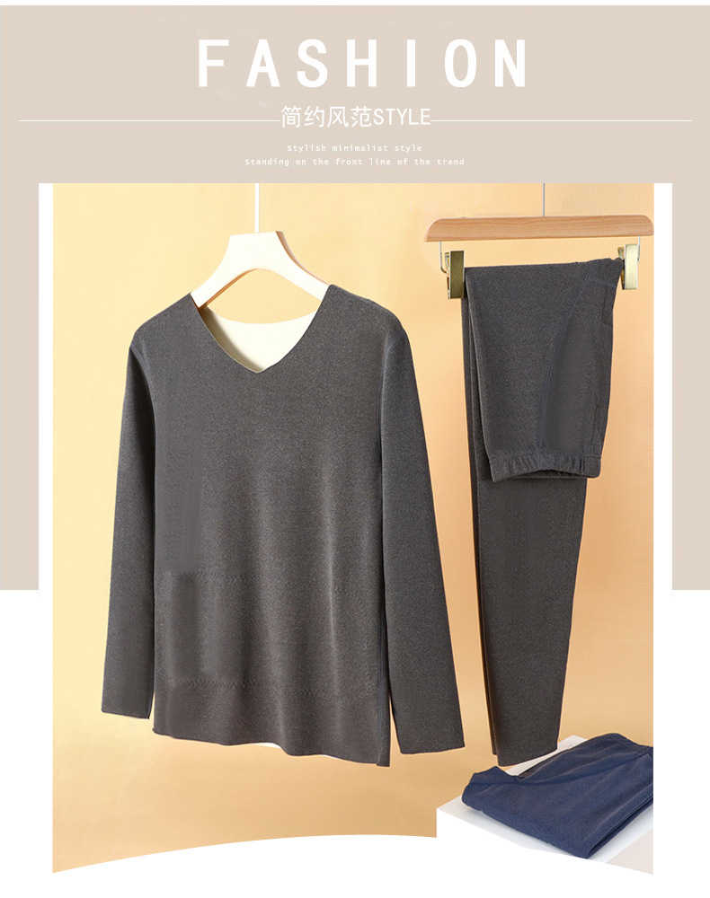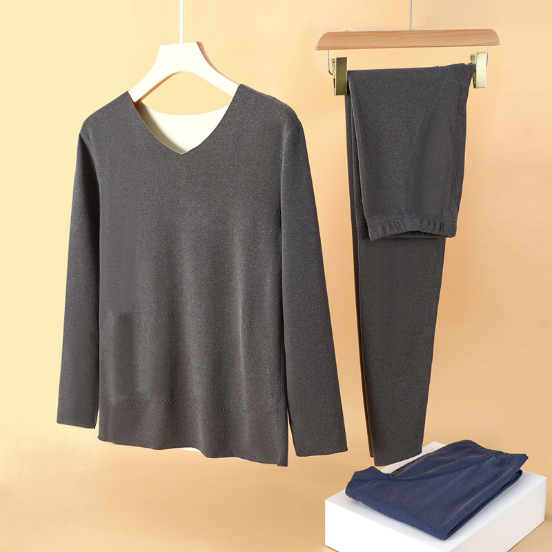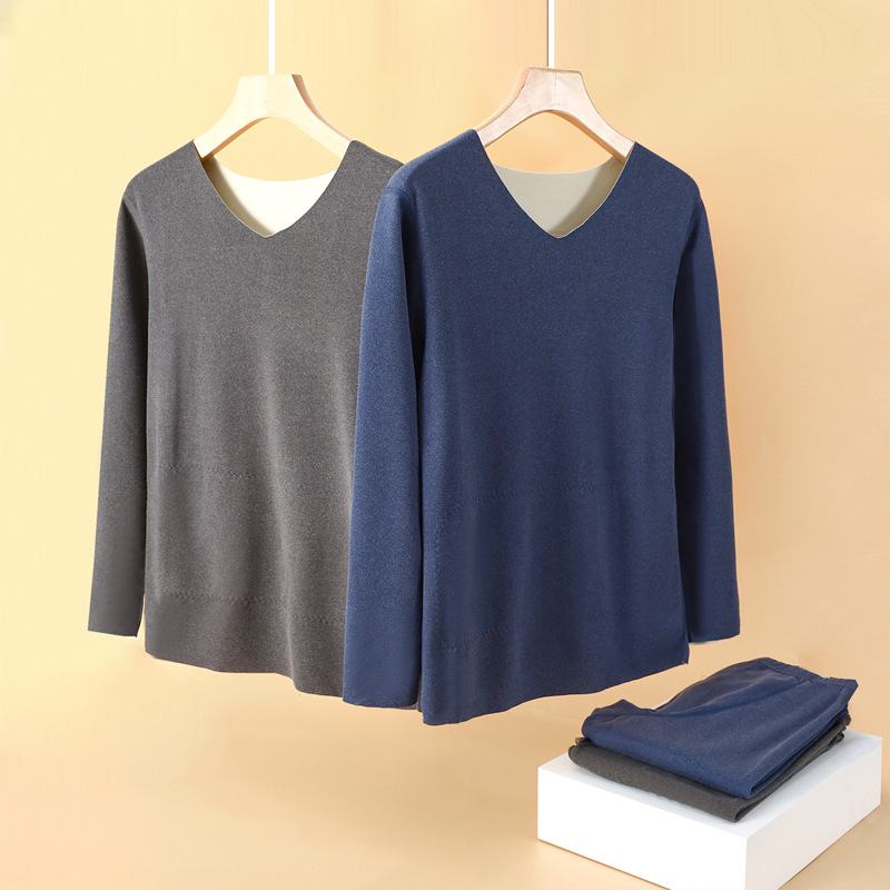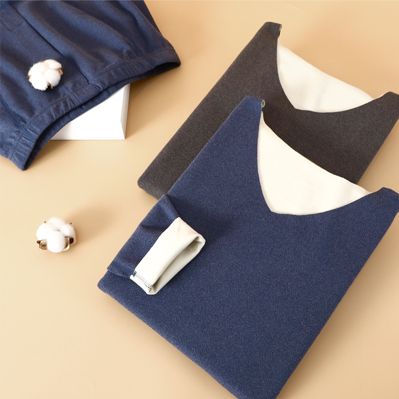가을과 겨울 기모 두꺼운 긴 소매 벨벳 난방 패치 무릎 바지 세트 남자의 원활한 열 속옷스토어 가기
