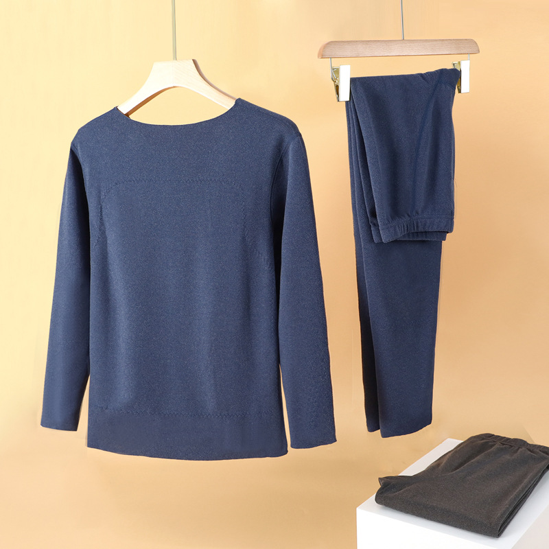 가을과 겨울 기모 두꺼운 긴 소매 벨벳 난방 패치 무릎 바지 세트 남자의 원활한 열 속옷