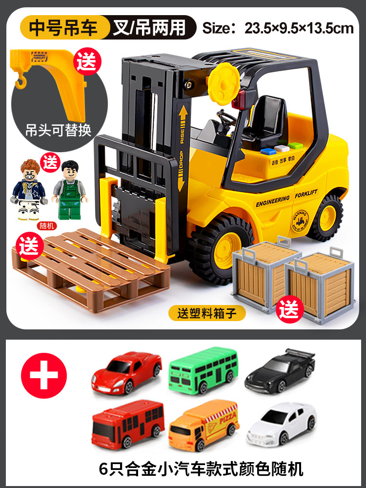 • 음악 지게차 + 6 합금 자동차 [인형 2 개 + 하드 박스 2 개 + 후크 + 포크 플레이트 보내기]]