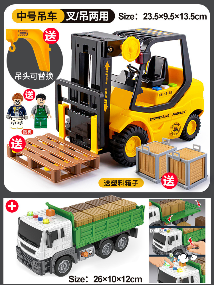 • 음악 지게차 + 운송 덤프 트럭 [인형 2 개 + 하드 박스 10 개 + 후크 + 포크 플레이트 보내기]]