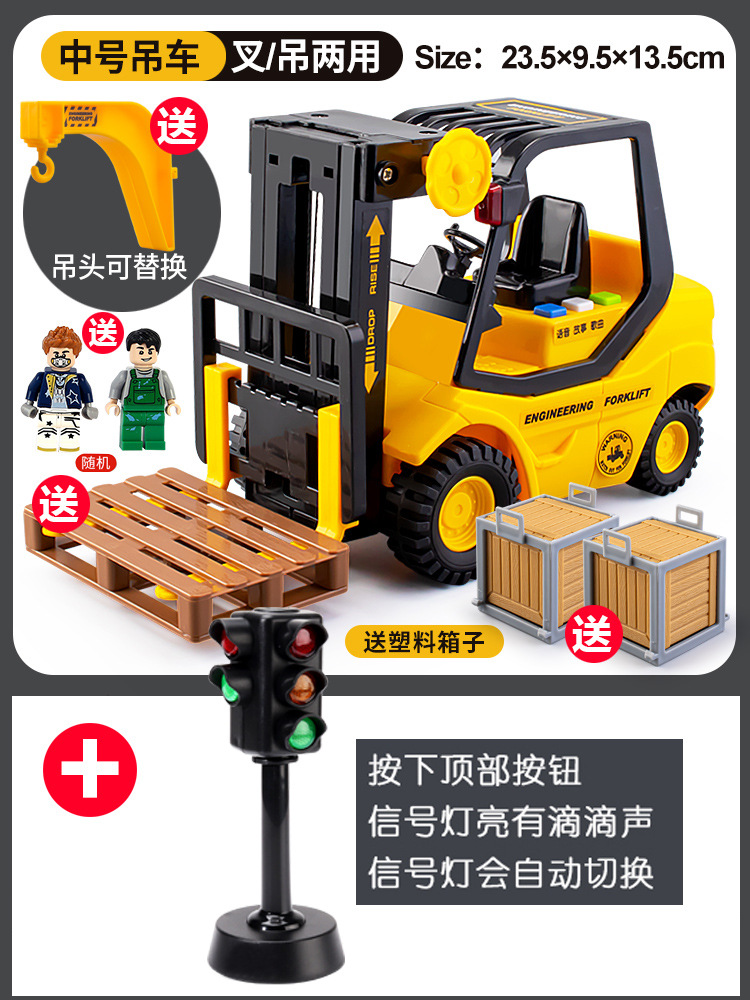 • 음악 지게차 + 음향 광학 신호등 [인형 2 개 + 하드 박스 2 개 + 후크 + 포크 플레이트 보내기]]