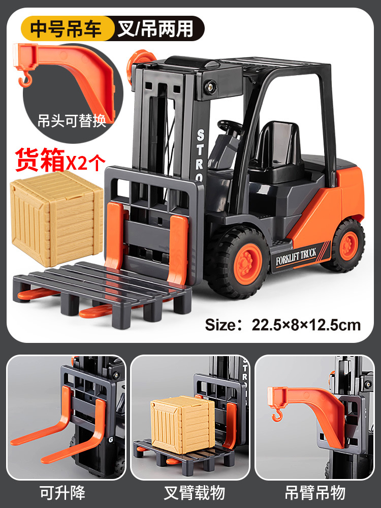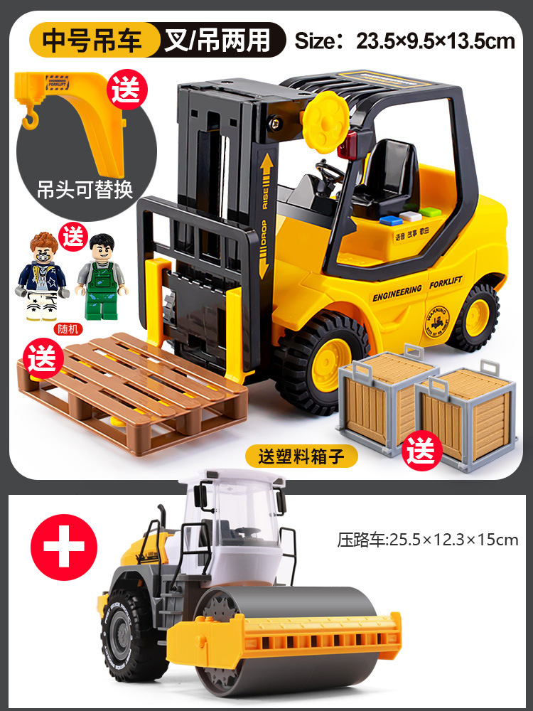 • 음악 지게차 + 합금 굴삭기 [인형 2 개 + 하드 박스 2 개 + 후크 + 포크 플레이트 보내기]]
