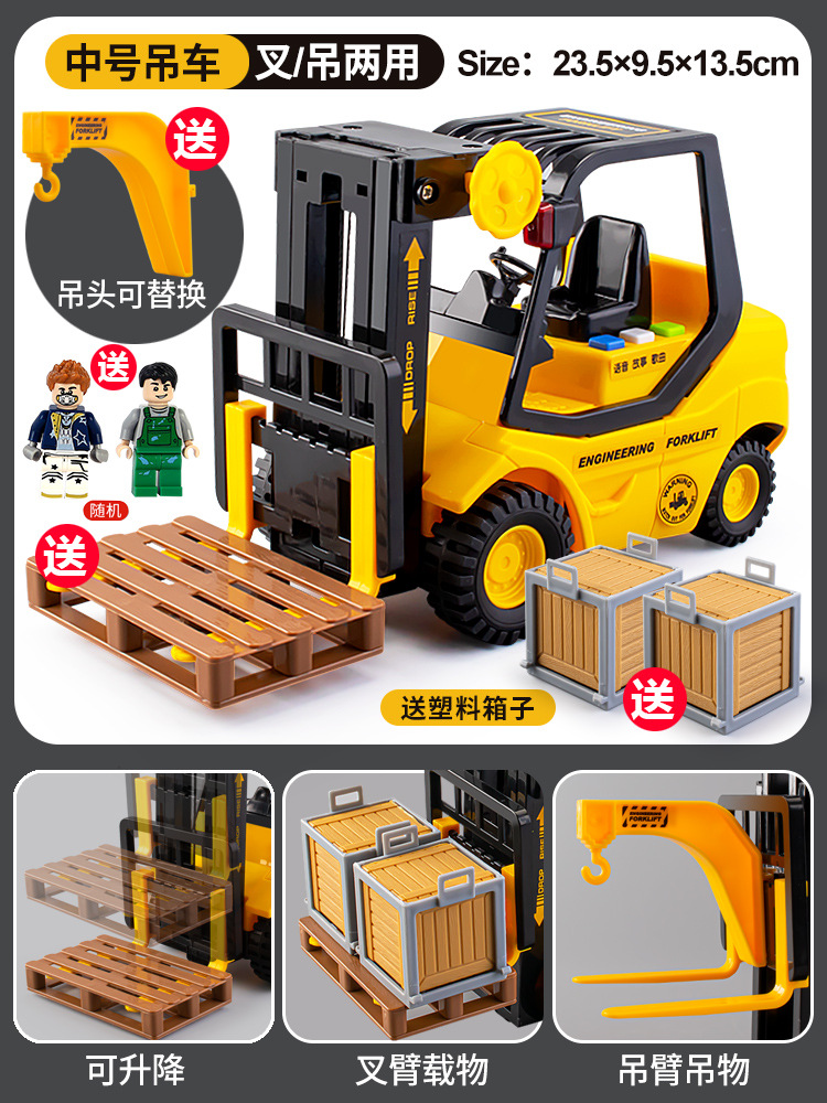 아기 대형 관성 공학 트럭 음악 지게차 크레인 리프팅 크레인 어린이 소년 장난감 자동차 모델스토어 가기