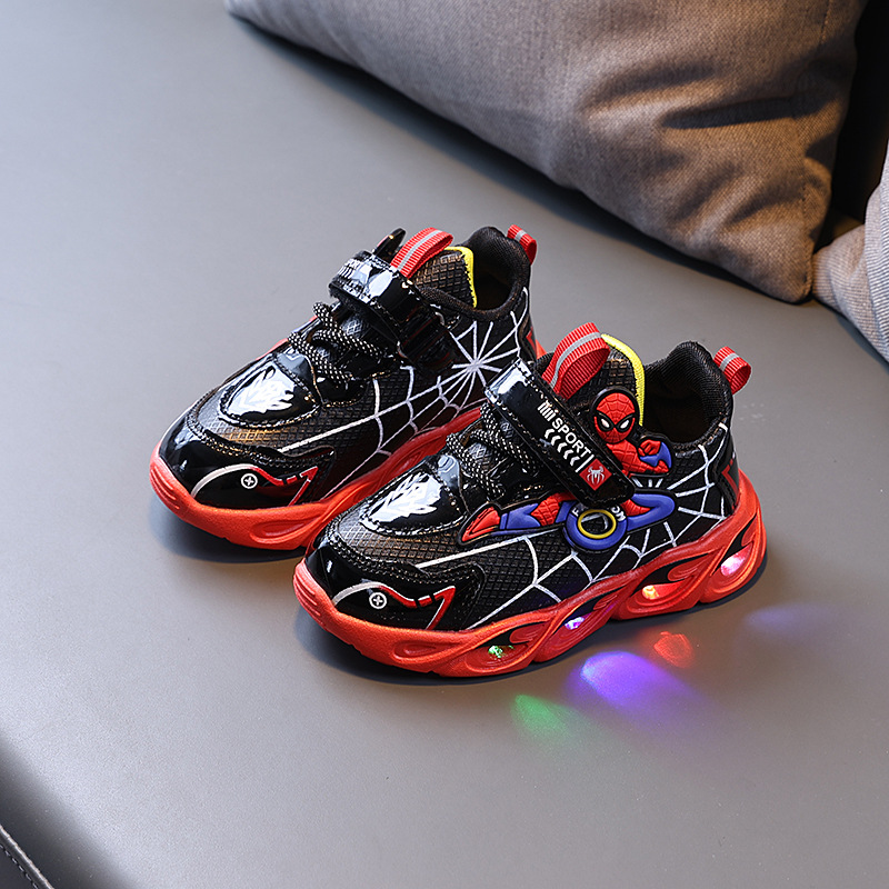 봄과 가을 새 가죽 만화 조명 토레 운동화 가벼운 밑창 어린이 학생 소년의 벨크로 운동화