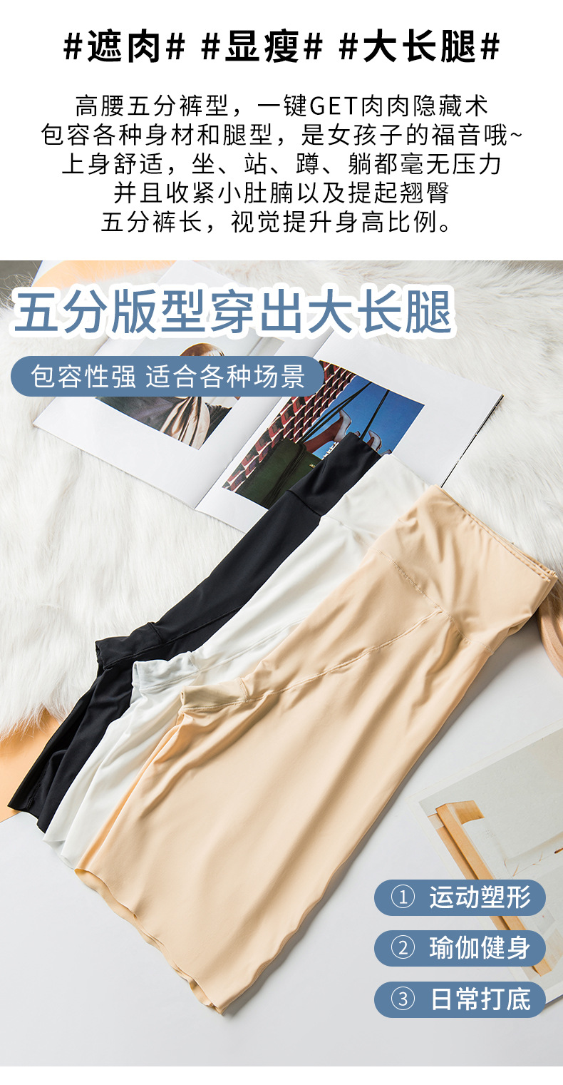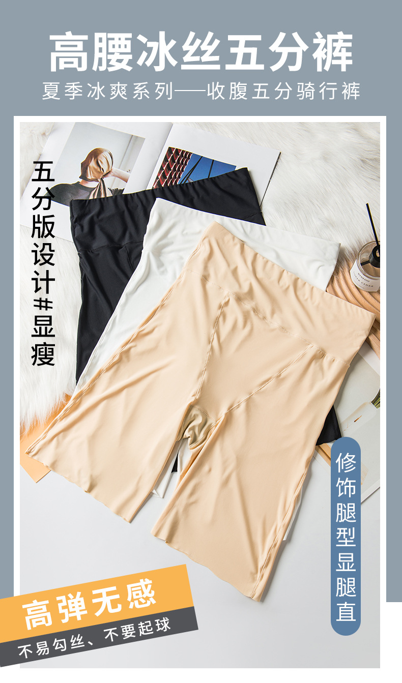안전 바지 여성용 눈부심 방지 복서 반바지 원활한 비 컬링 여름 얇은 아이스 실크 하이 웨이스트 배꼽 턱걸이베이스 안전 반바지스토어 가기