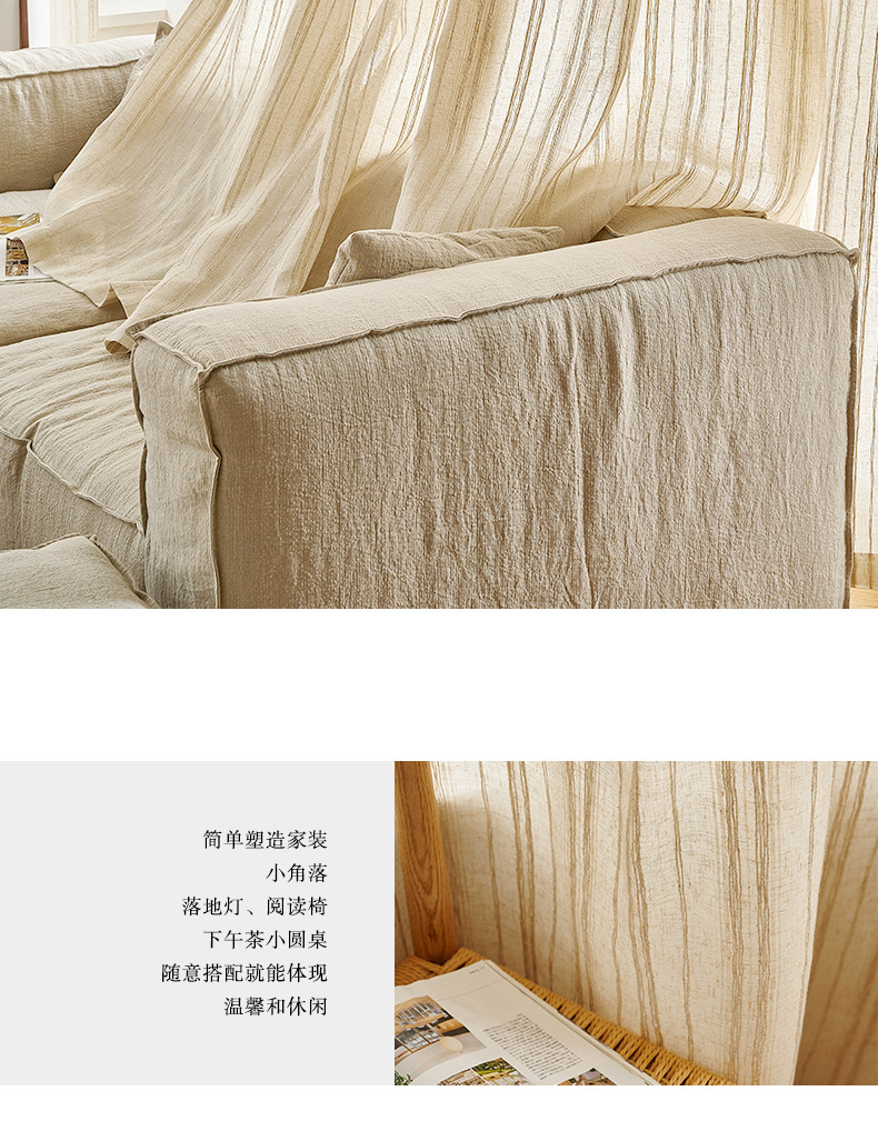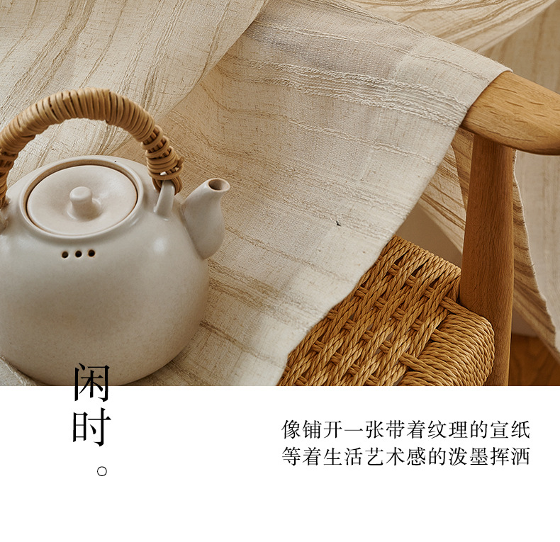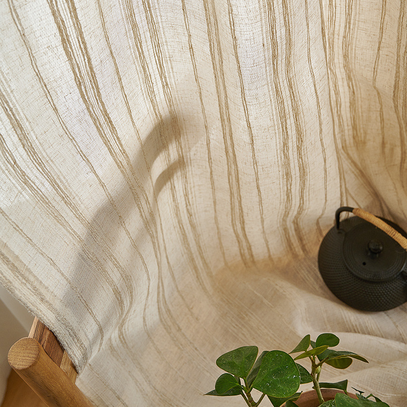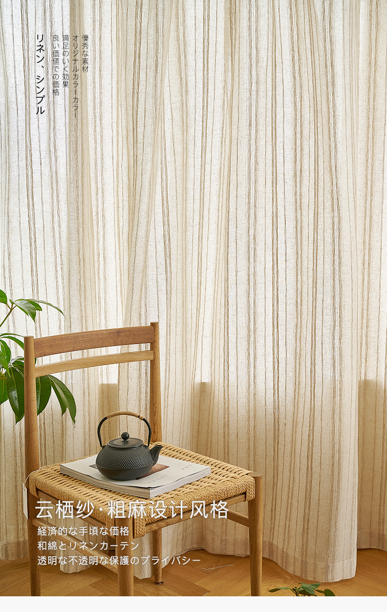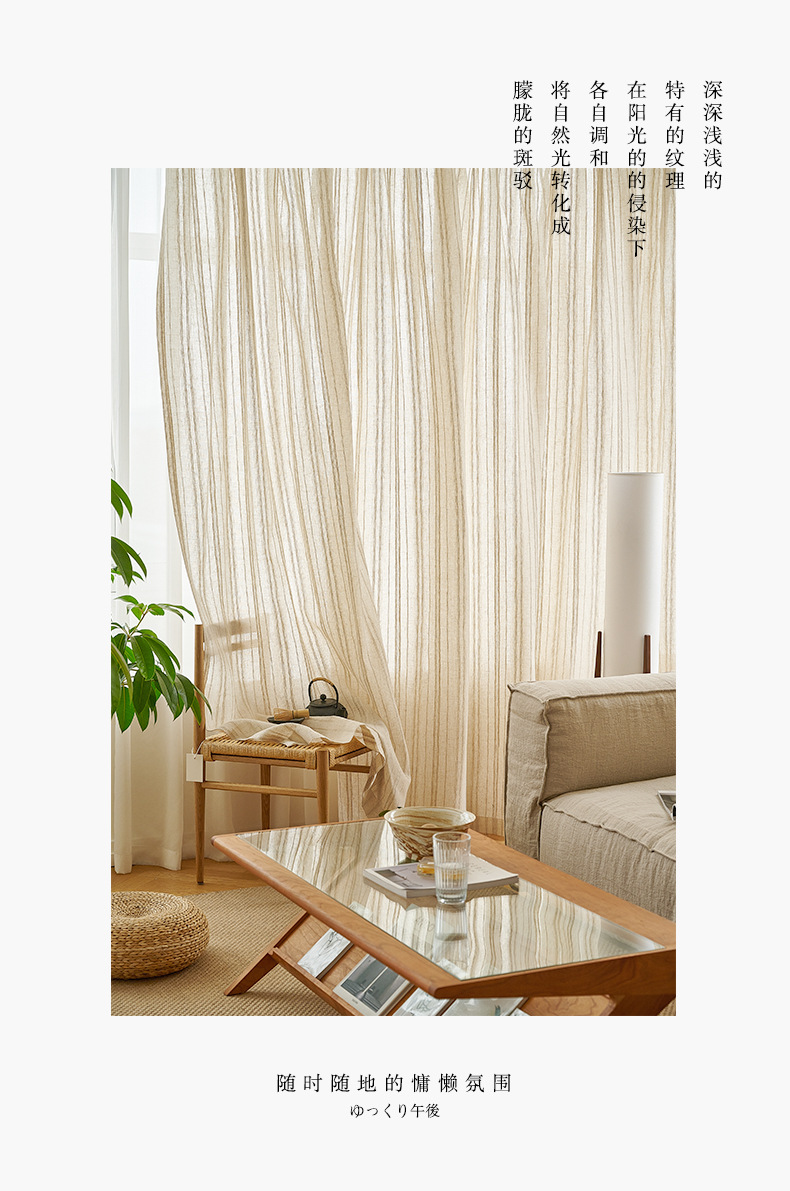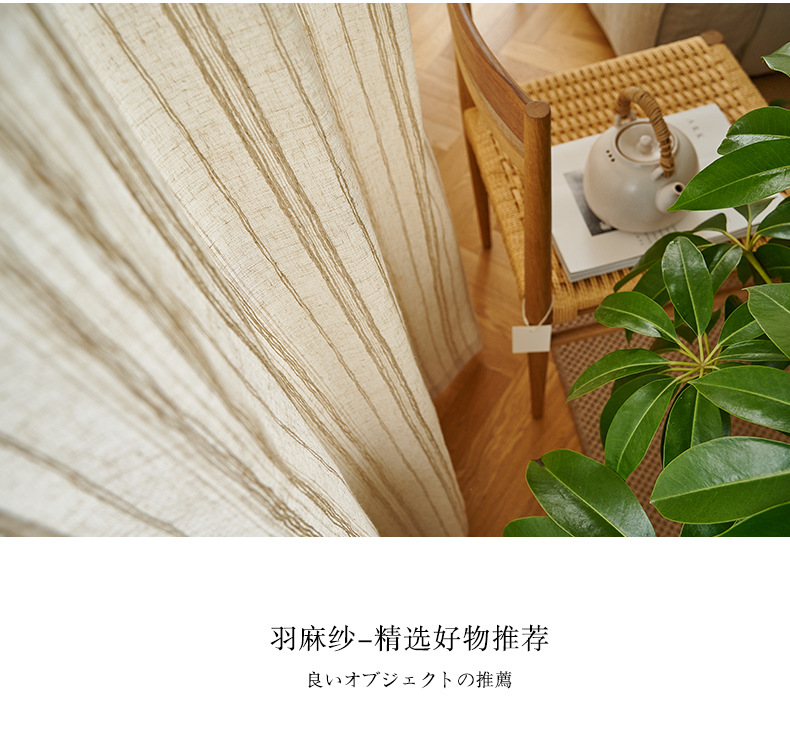 일본식 코튼 린넨 투명 린넨 스크린 일본 홈스테이 스타일 거실 찻집 스트라이프 코튼 린넨 커튼 거즈 커튼스토어 가기