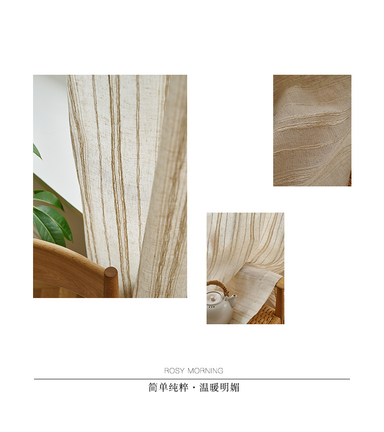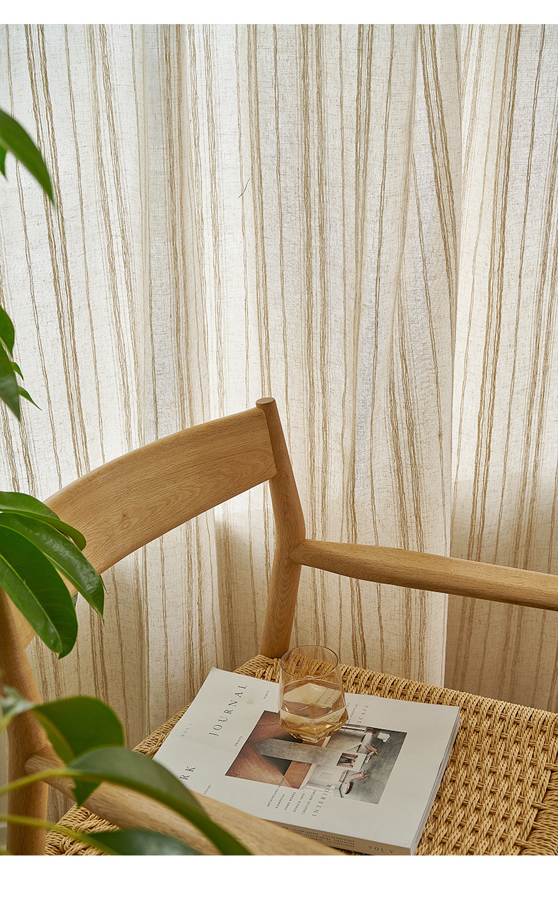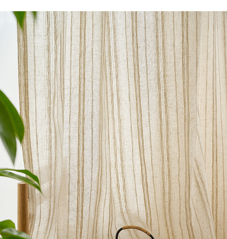 일본식 코튼 린넨 투명 린넨 스크린 일본 홈스테이 스타일 거실 찻집 스트라이프 코튼 린넨 커튼 거즈 커튼