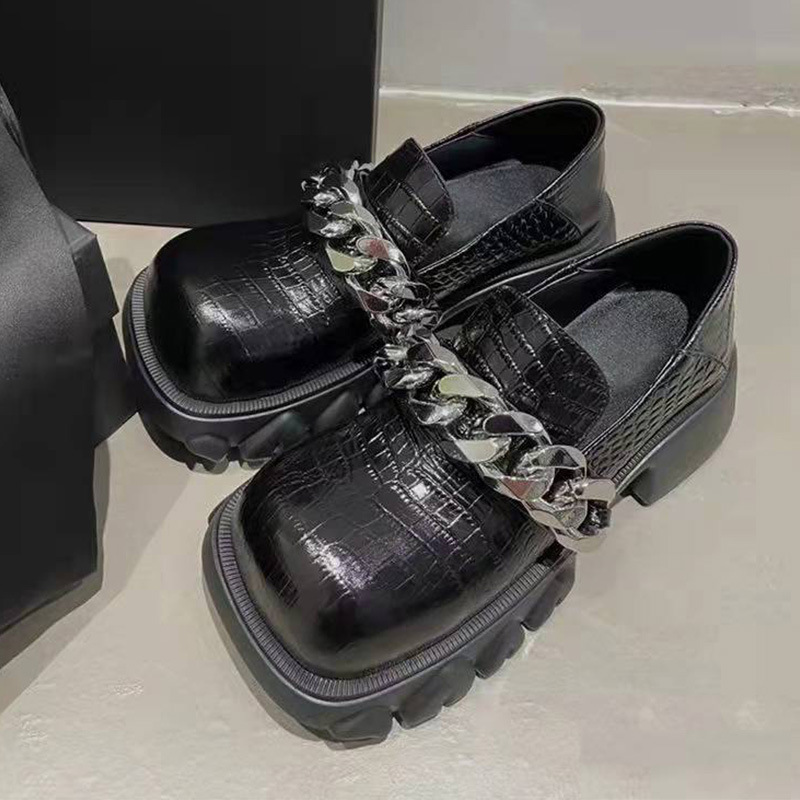 여성 작은 가죽 신발 봄과 가을 2024 새로운 체인 악어 패턴 아카데미 스타일 메리 제인 드래곤 치아 플랫폼 밑창 Lefu 싱글 신발스토어 가기