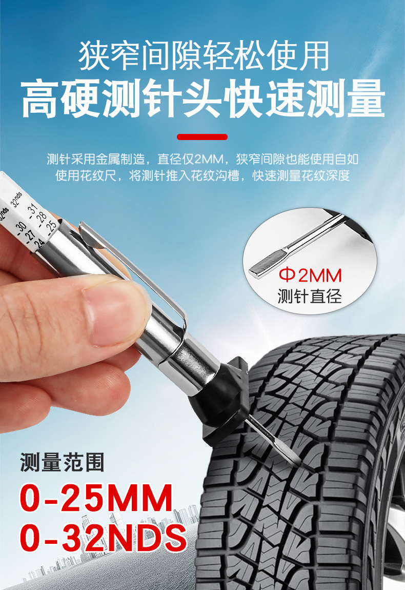 자동차 타이어 트레드 홈 깊이 게이지 타이어 패턴 두께 게이지 측정 게이지 트레드 깊이 게이지 차량 타이어 게이지