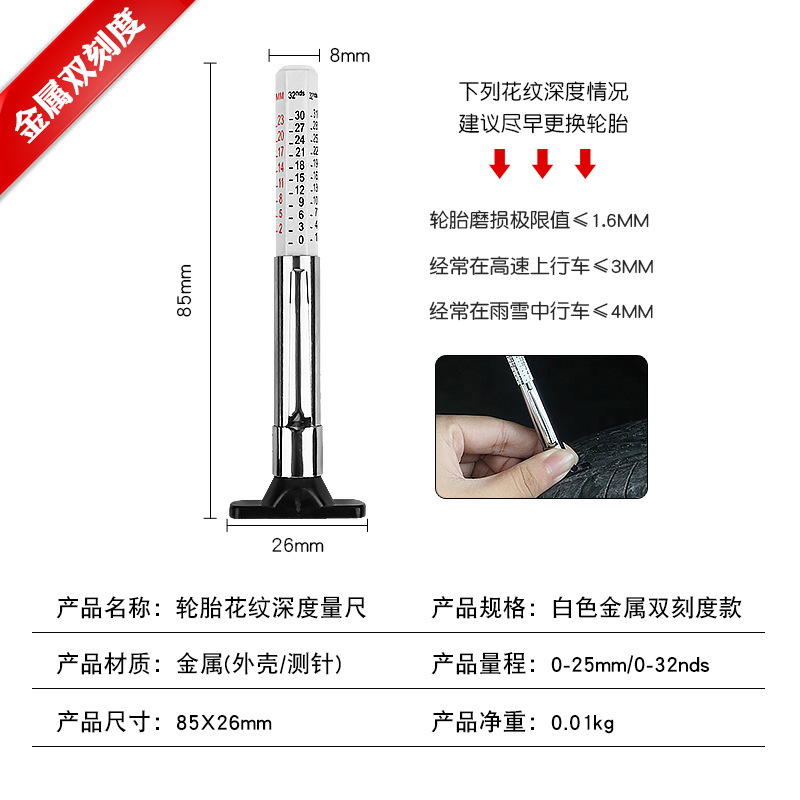 자동차 타이어 트레드 홈 깊이 게이지 타이어 패턴 두께 게이지 측정 게이지 트레드 깊이 게이지 차량 타이어 게이지스토어 가기