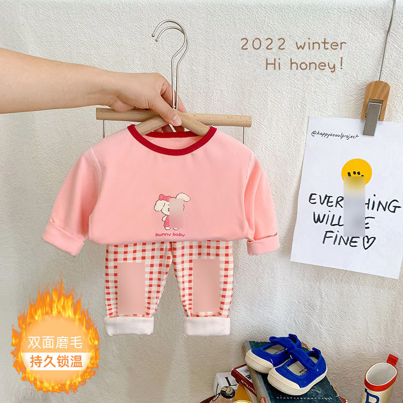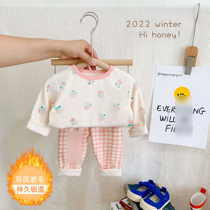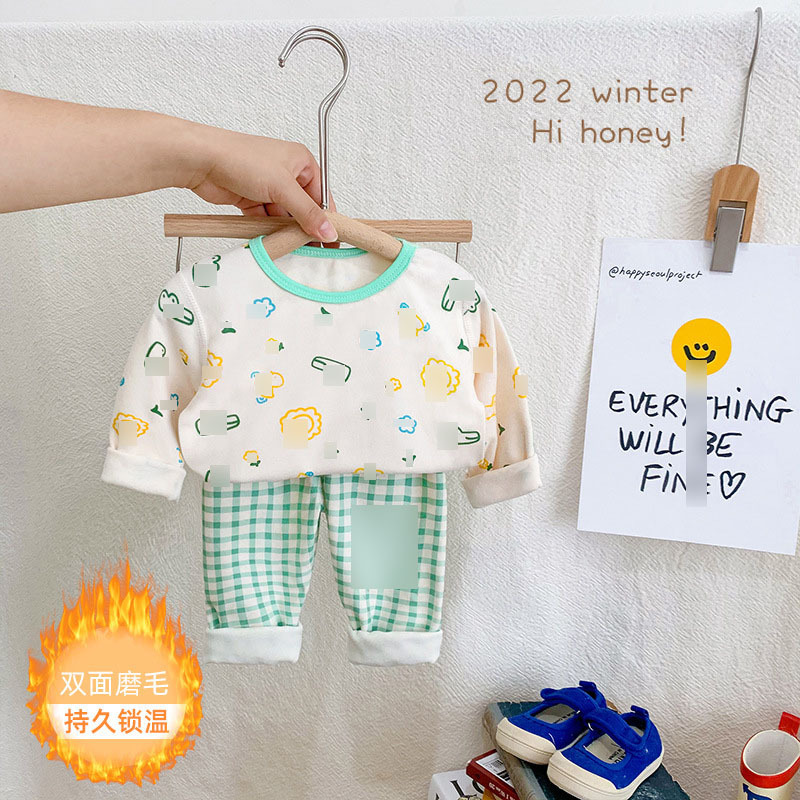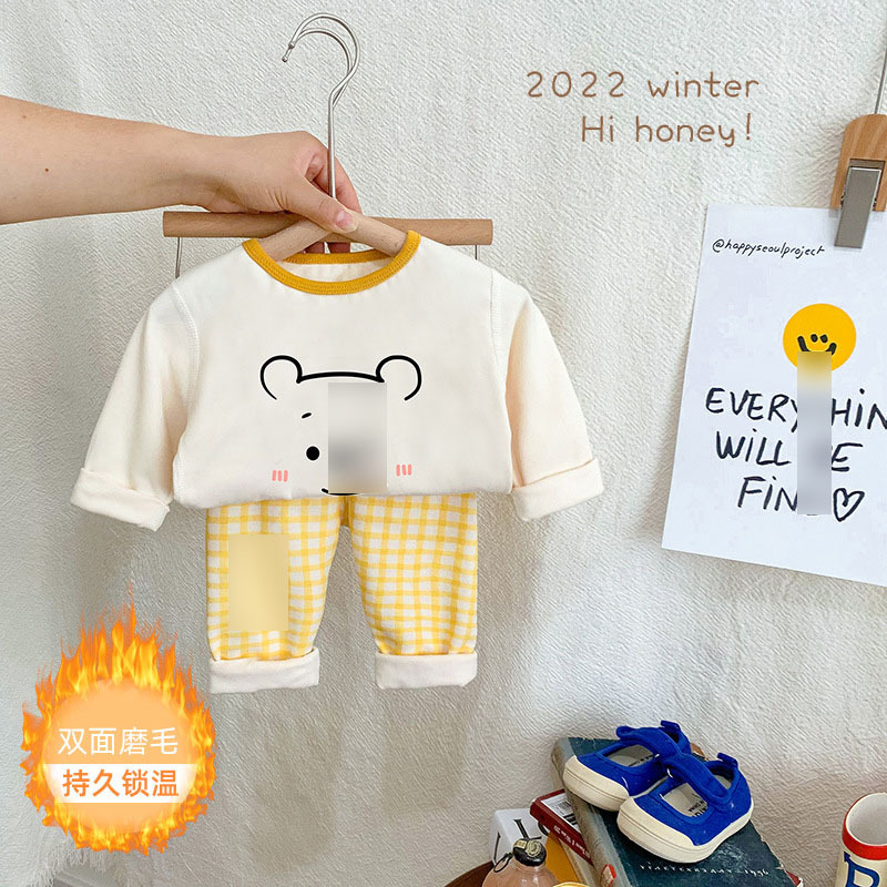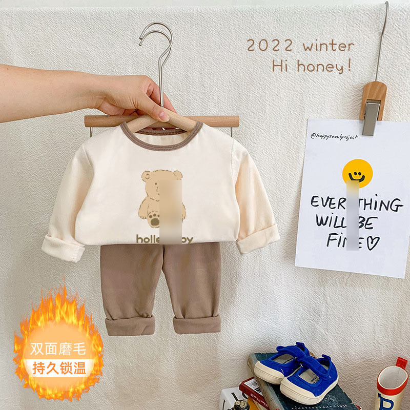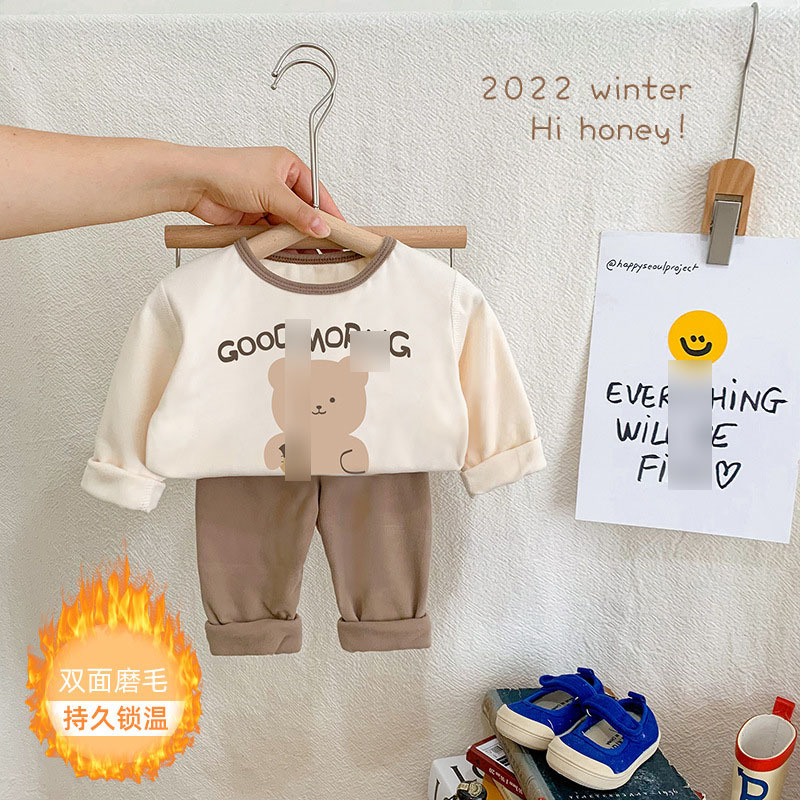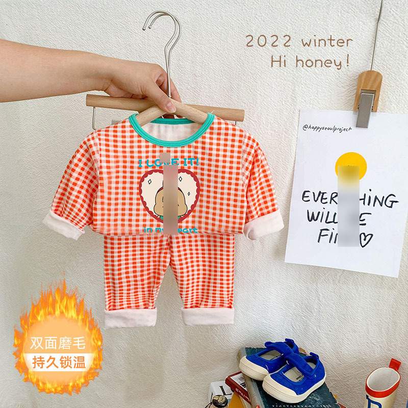 한국 스타일 인터넷 연예인 어린이 세트 편안한 속옷 드 벨벳 가을과 겨울 착용 샌딩 두꺼운 남성과 여성 아기 가정 옷 사용자 정의스토어 가기