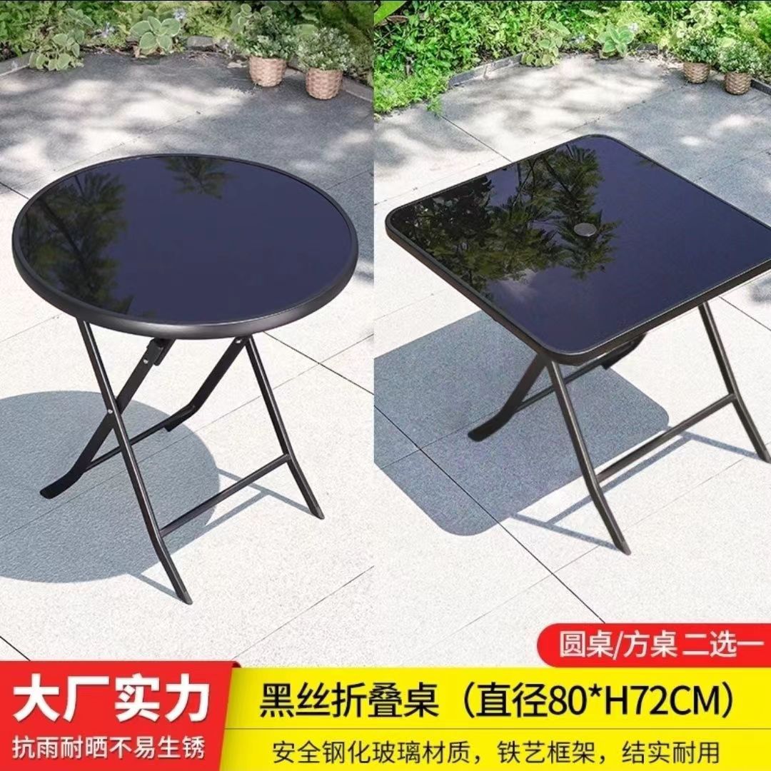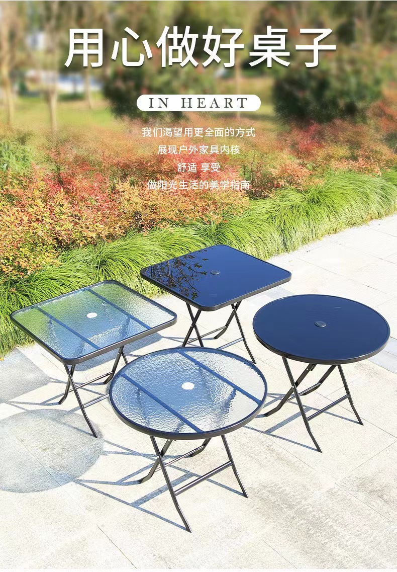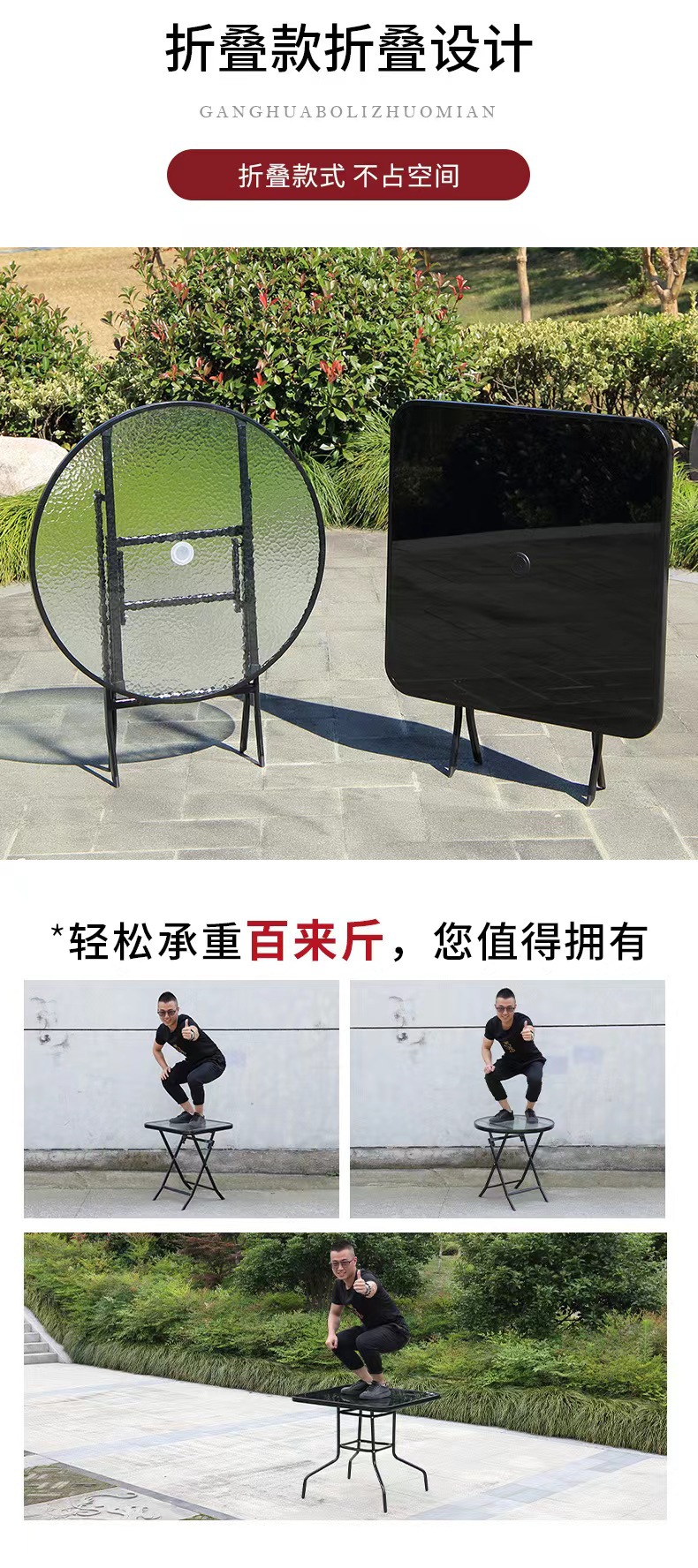 제조업체에서 승인한 야외 접이식 테이블, 레저용 강화유리 유럽식 식탁, 철제 투명 유리 빌라 원형 접이식 테이블스토어 가기