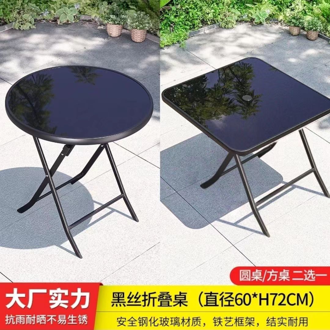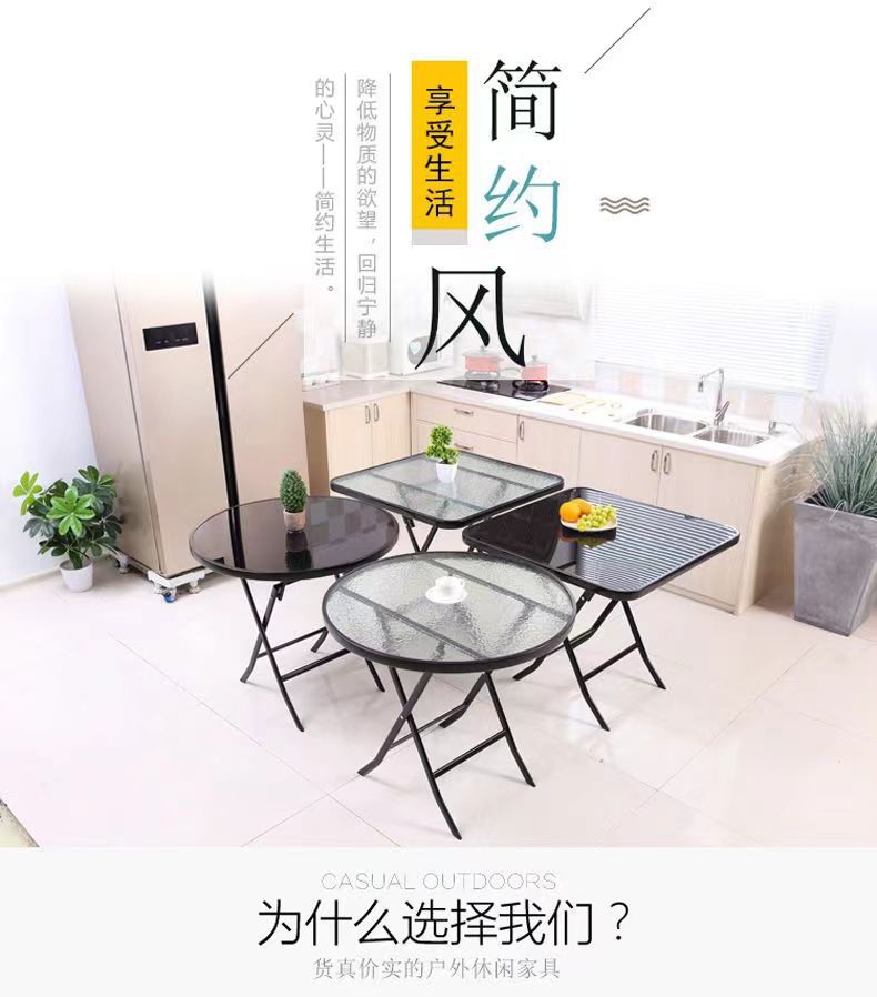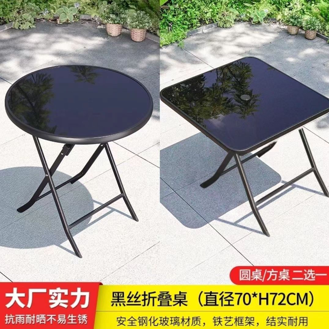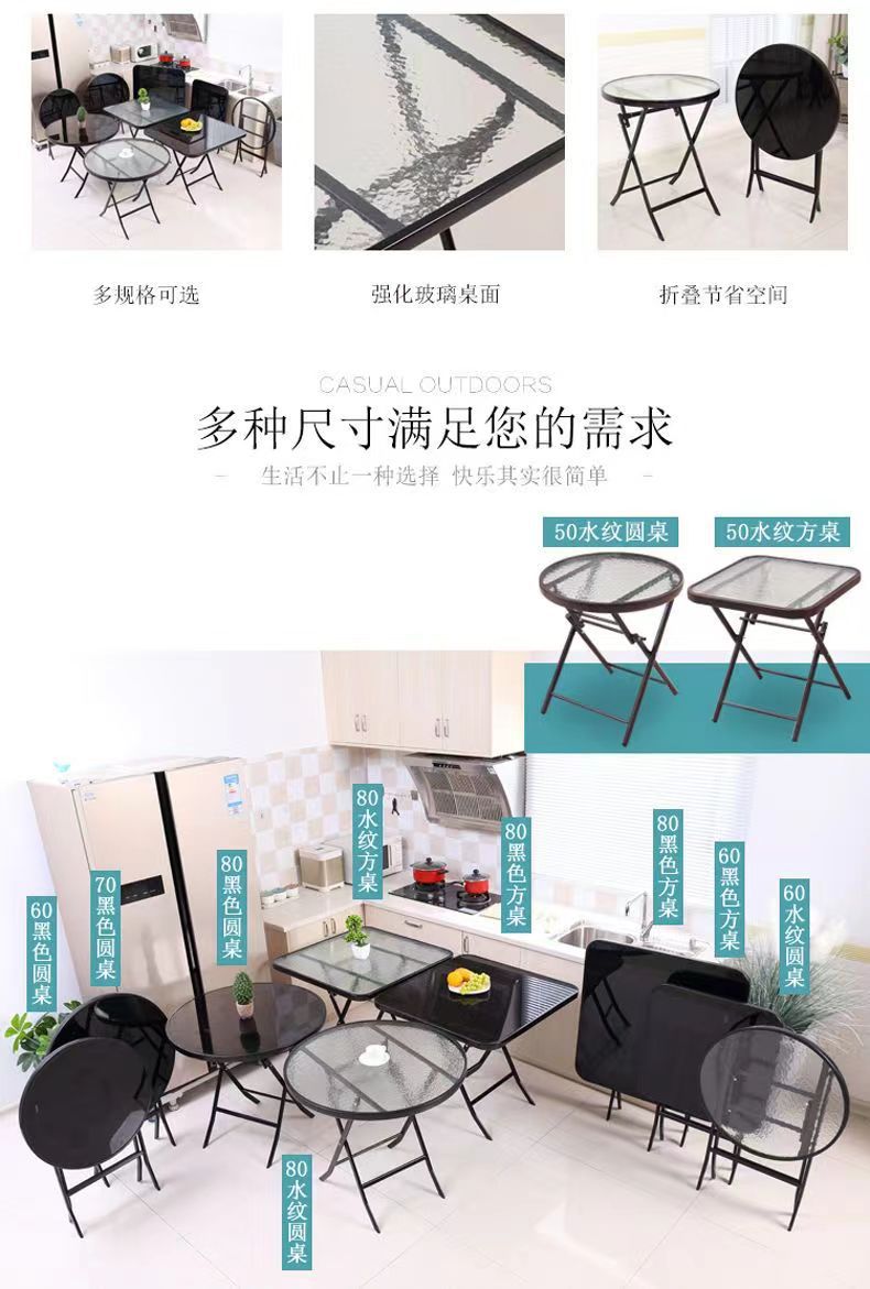 제조업체에서 승인한 야외 접이식 테이블, 레저용 강화유리 유럽식 식탁, 철제 투명 유리 빌라 원형 접이식 테이블스토어 가기
