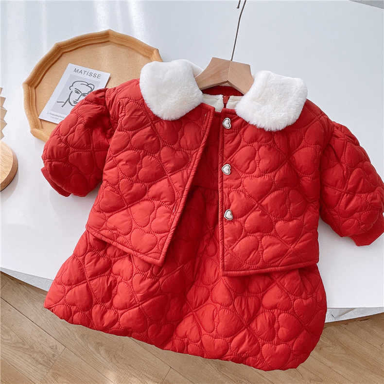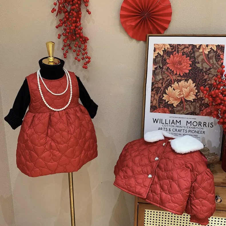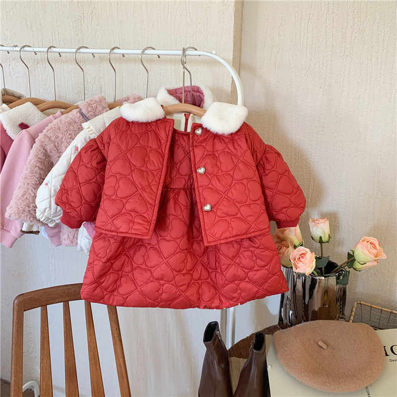 여아 원피스 세트 2022 새로운 스타일 한국 스타일 아기 소녀의 면 패딩 재킷 공주 원피스 어린이 유행 새해 원피스