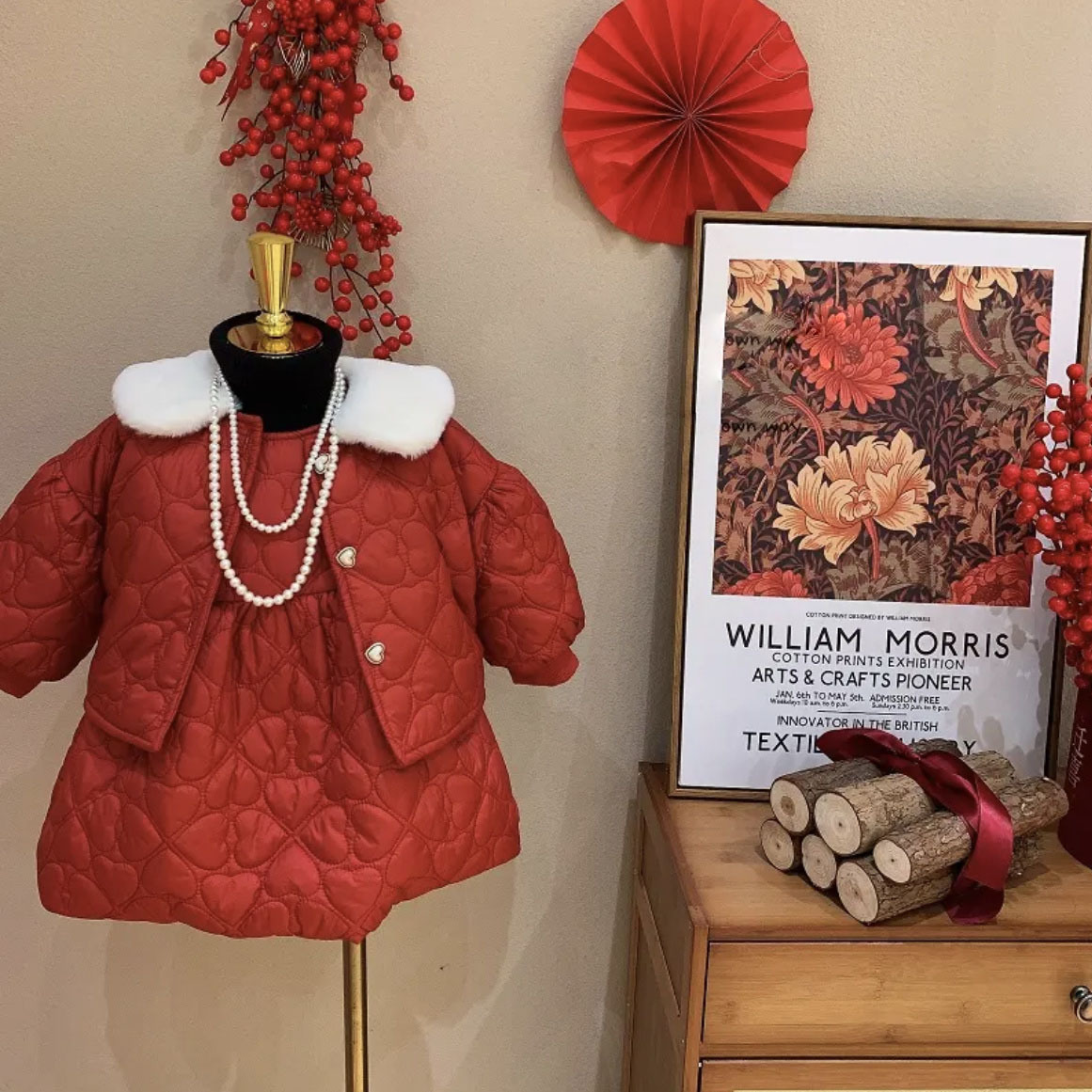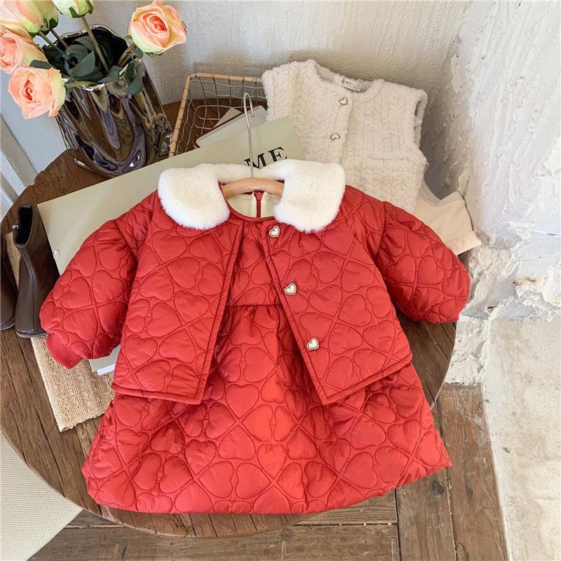 여아 원피스 세트 2022 새로운 스타일 한국 스타일 아기 소녀의 면 패딩 재킷 공주 원피스 어린이 유행 새해 원피스스토어 가기