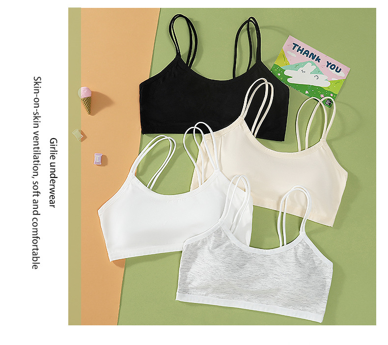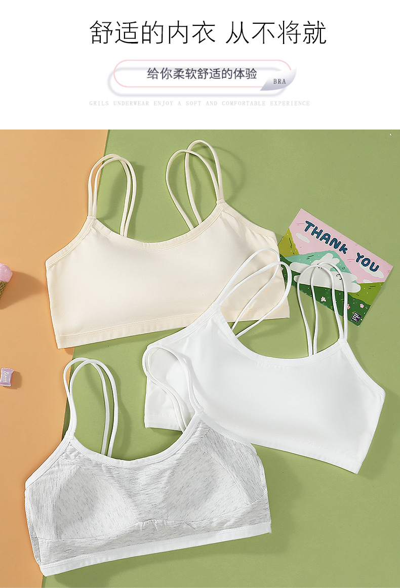 통기성 2 차 여아 속옷 작은 조끼 학생 얇은 면 편안한 간단한 소녀 스포츠 순면 가슴 고정 컵