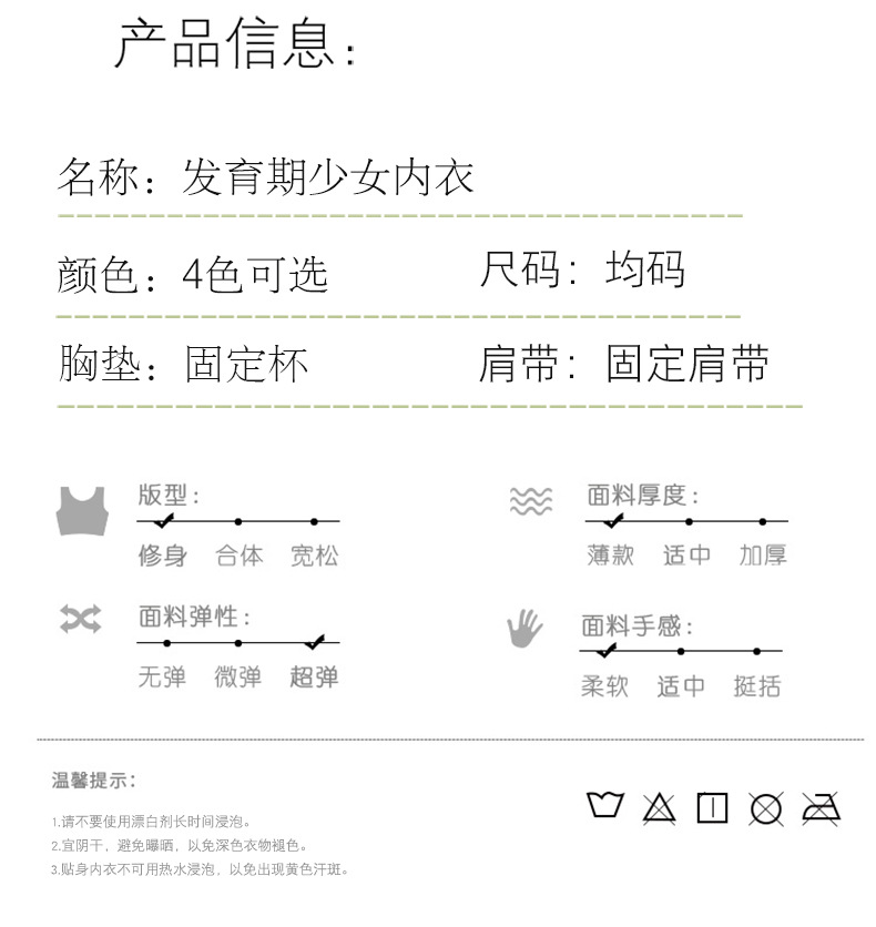 통기성 2 차 여아 속옷 작은 조끼 학생 얇은 면 편안한 간단한 소녀 스포츠 순면 가슴 고정 컵스토어 가기