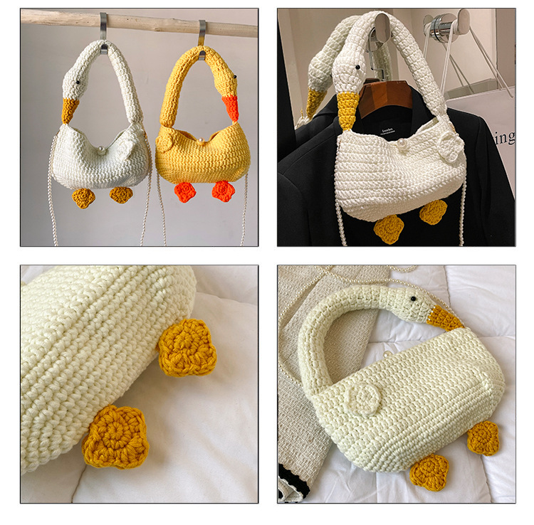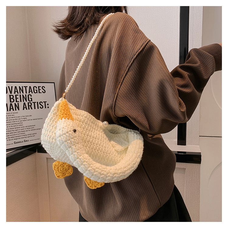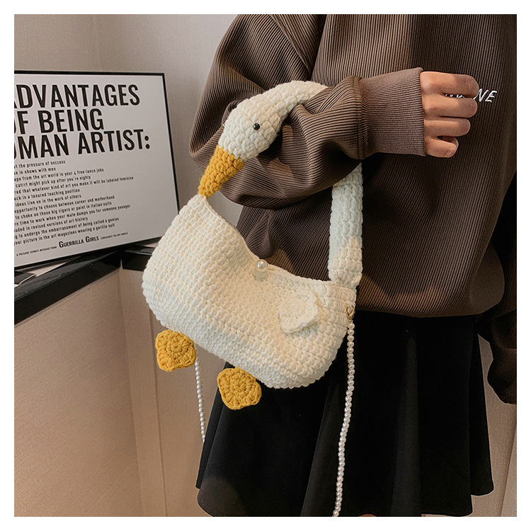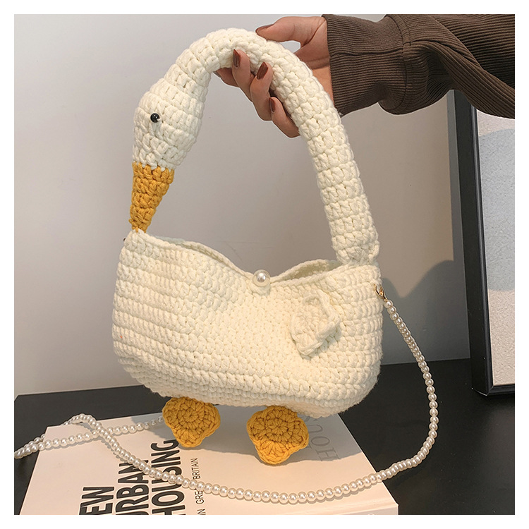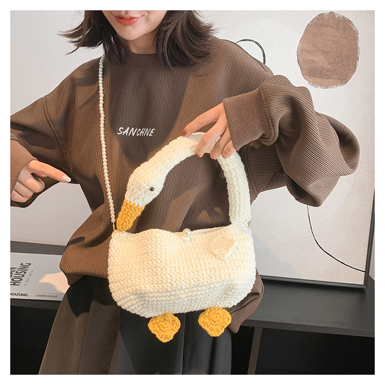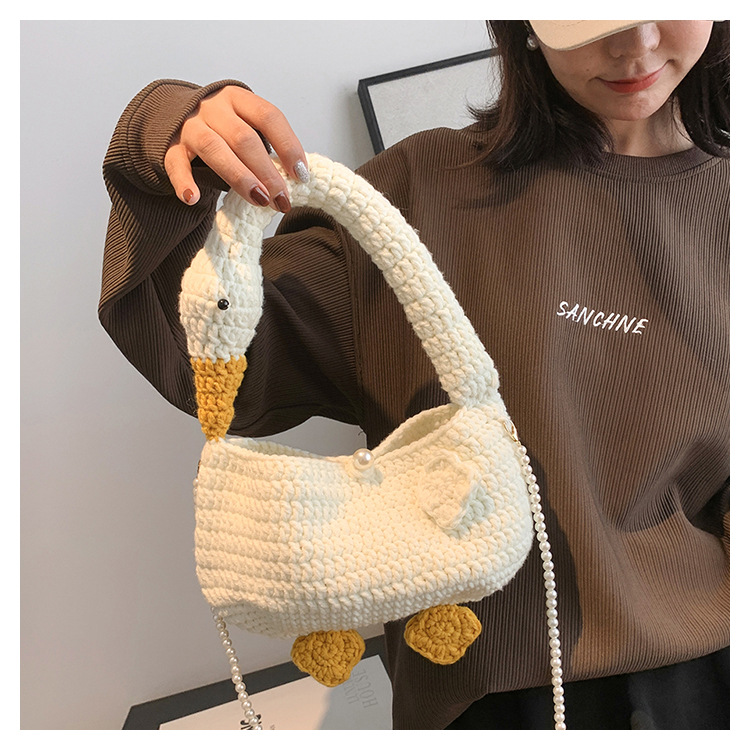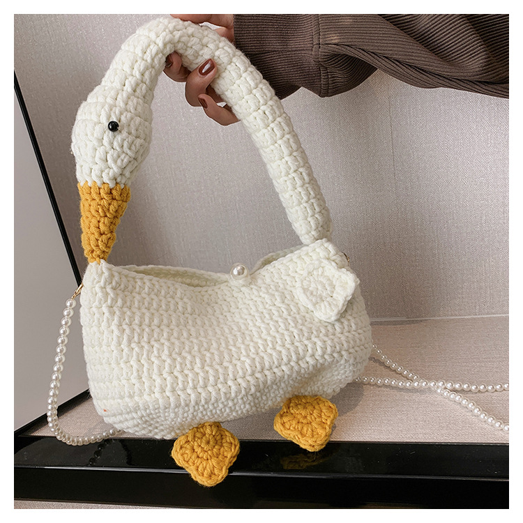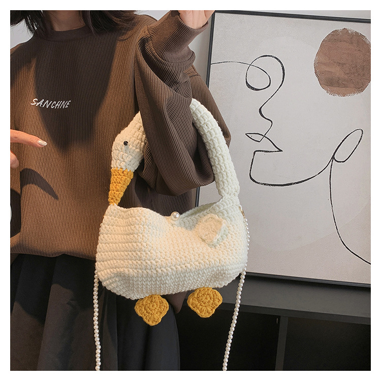 수제 후크 니트 울 펄 체인 크로스 바디 백 여성의 2024 새로운 유행 유행 개인화 된 큰 거위 핸드백스토어 가기