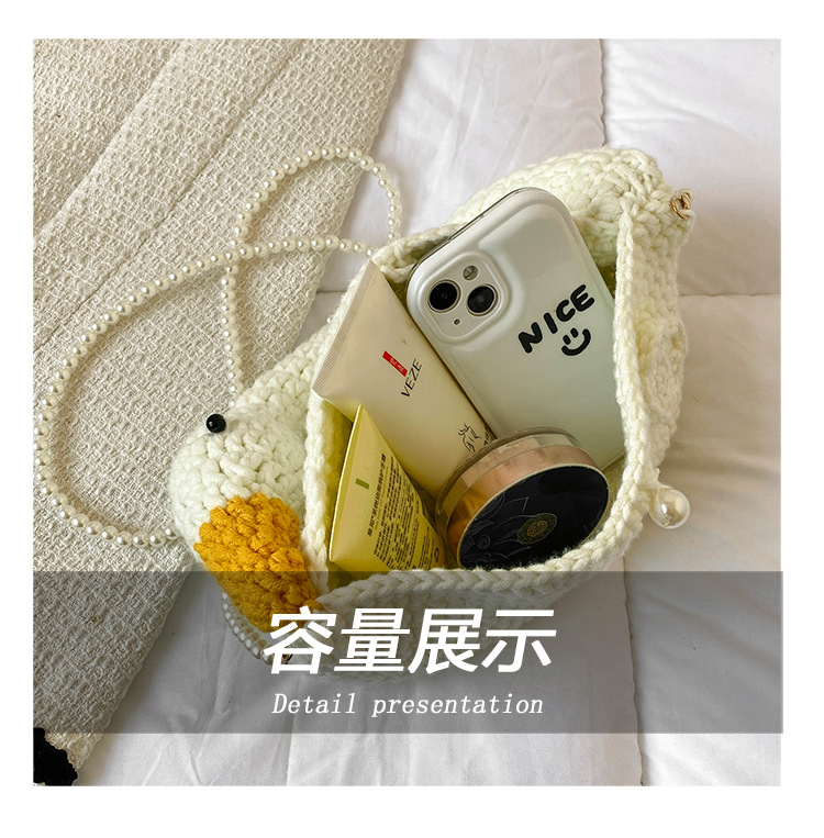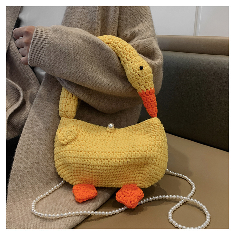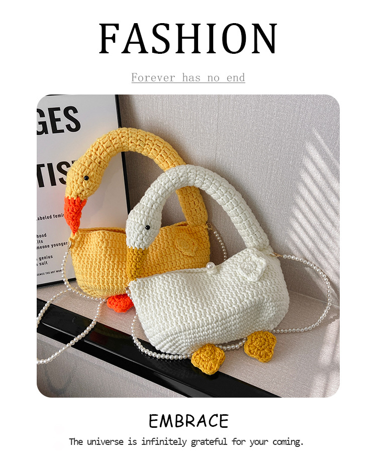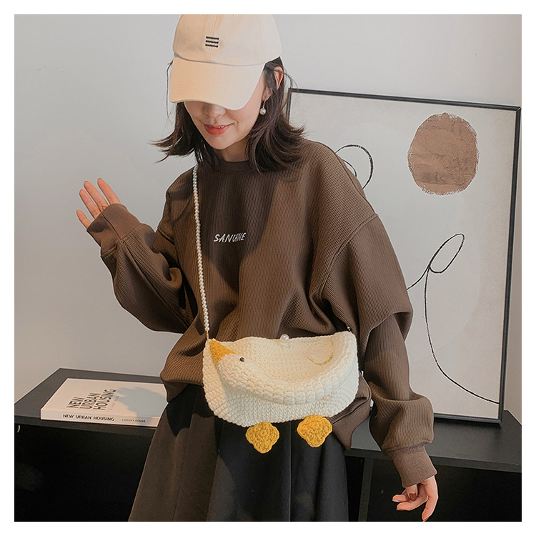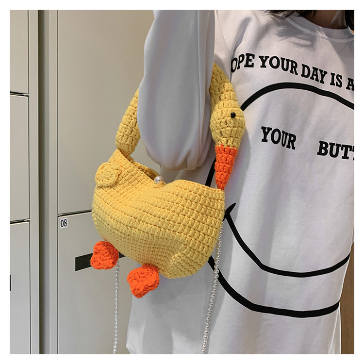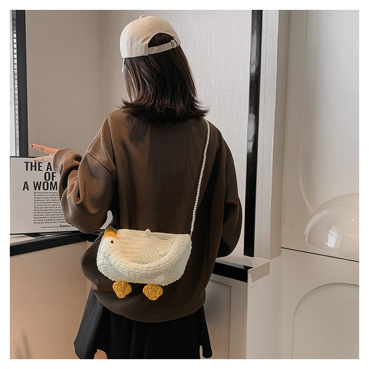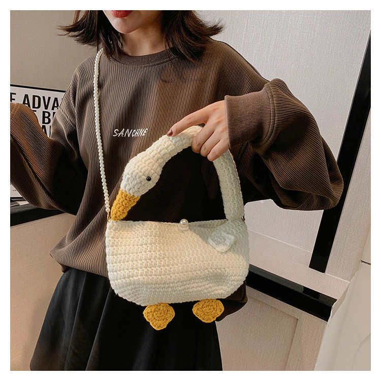 수제 후크 니트 울 펄 체인 크로스 바디 백 여성의 2024 새로운 유행 유행 개인화 된 큰 거위 핸드백스토어 가기