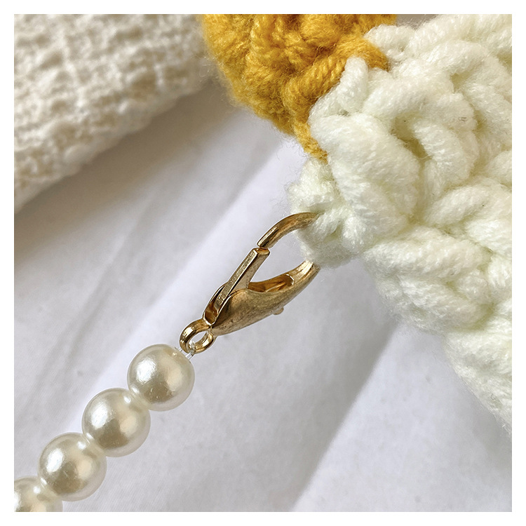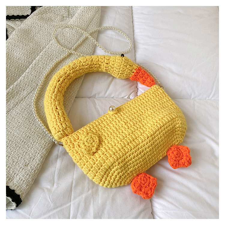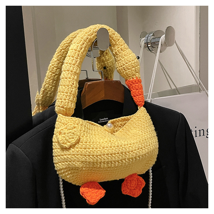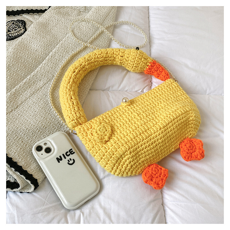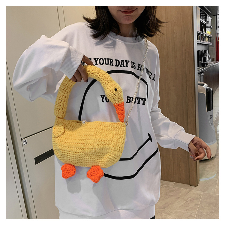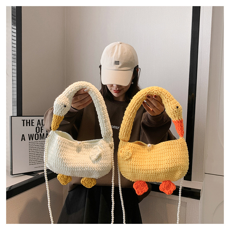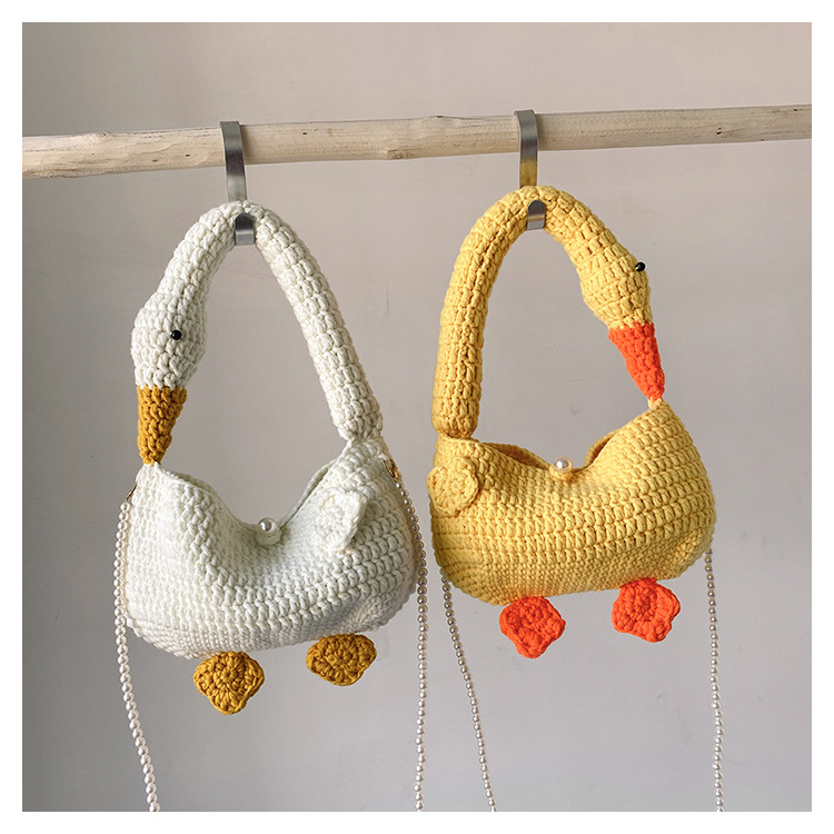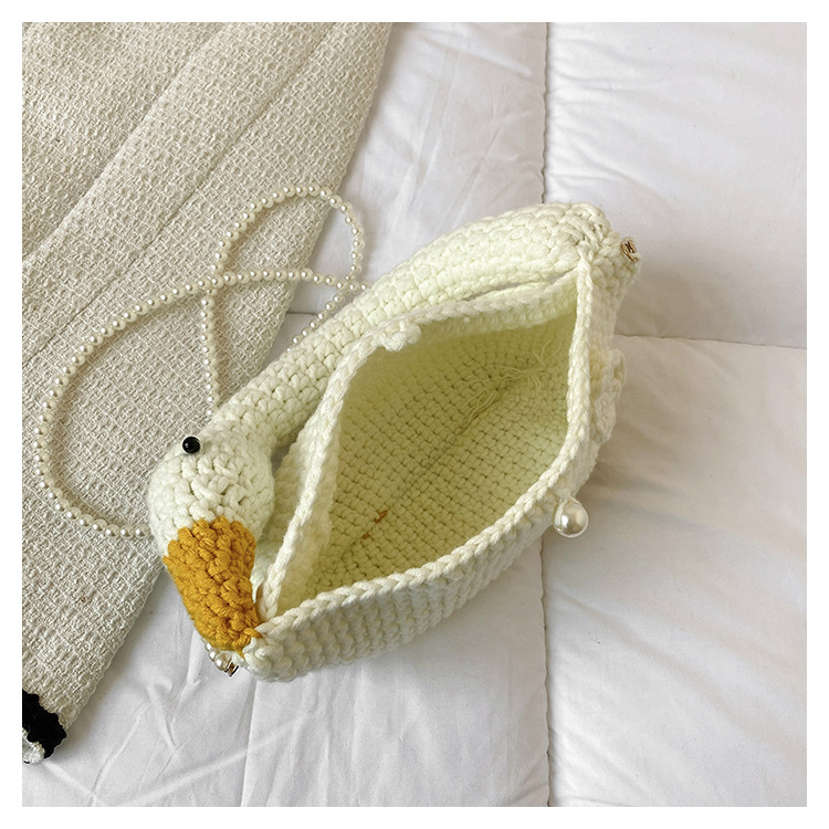 수제 후크 니트 울 펄 체인 크로스 바디 백 여성의 2024 새로운 유행 유행 개인화 된 큰 거위 핸드백스토어 가기