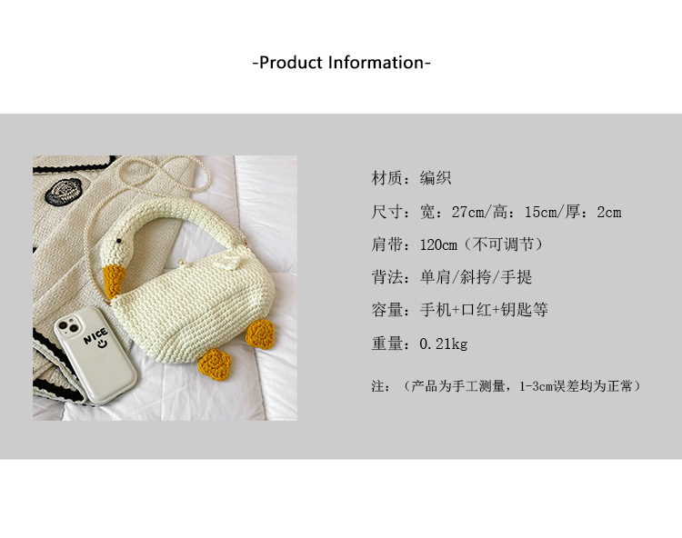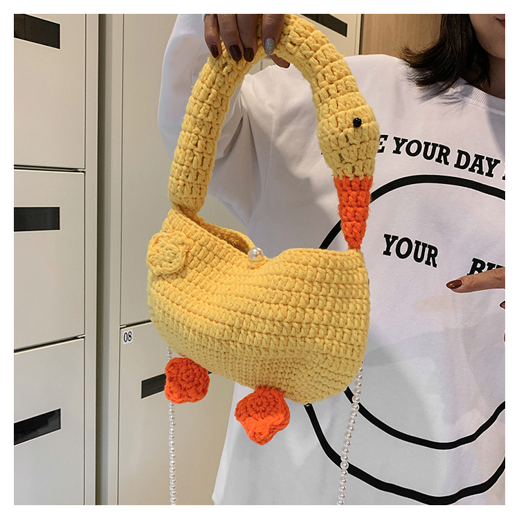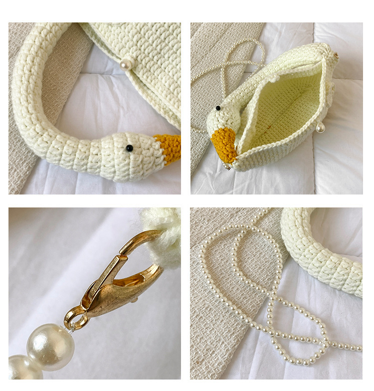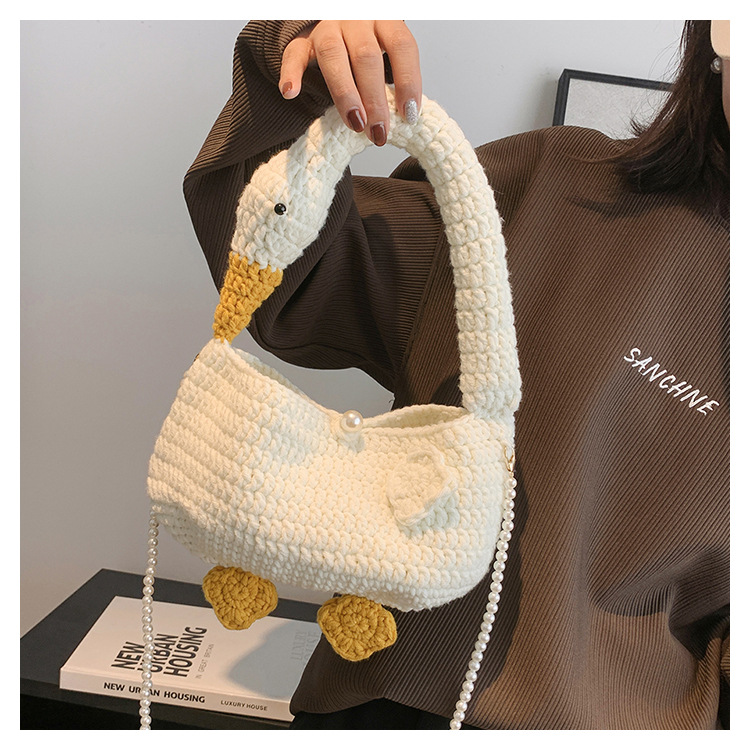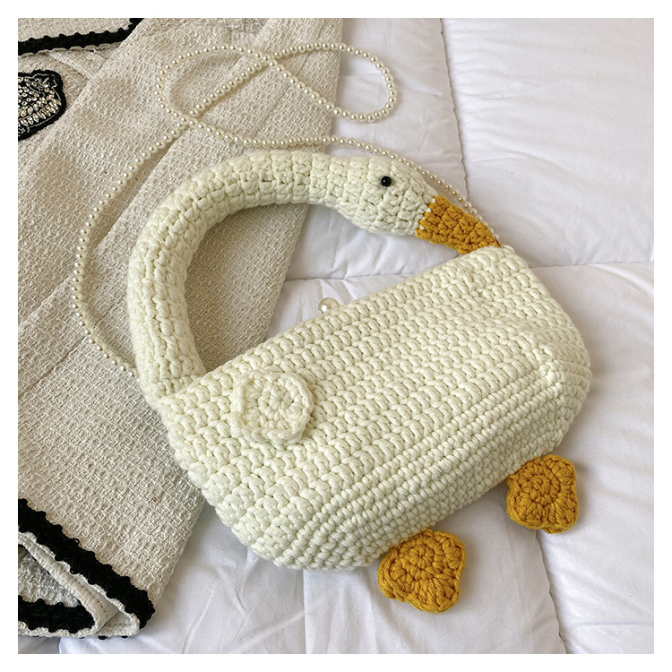 수제 후크 니트 울 펄 체인 크로스 바디 백 여성의 2024 새로운 유행 유행 개인화 된 큰 거위 핸드백
