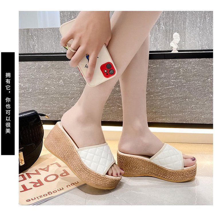 두꺼운 바닥 한쪽 다리 슬리퍼 머핀 하이힐 두꺼운 바닥 2022 여름 새로운 슬리밍 그물 적외선 착용 모든 경기 여성용 샌들과 슬리퍼