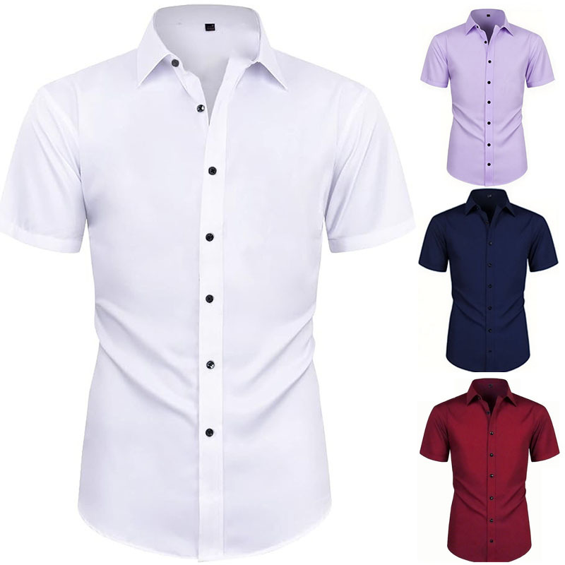 外贸爆款男士短袖男装夏白衬衫男工作服大码商务衬衣弹力上衣批发