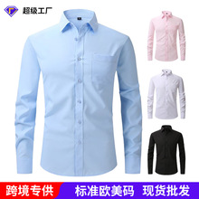 아마존의 인기 긴팔 흰색 셔츠 남성용 4방향 탄성 주름 방지 솔리드 컬러 비즈니스 캐주얼 루즈 아우터 셔츠