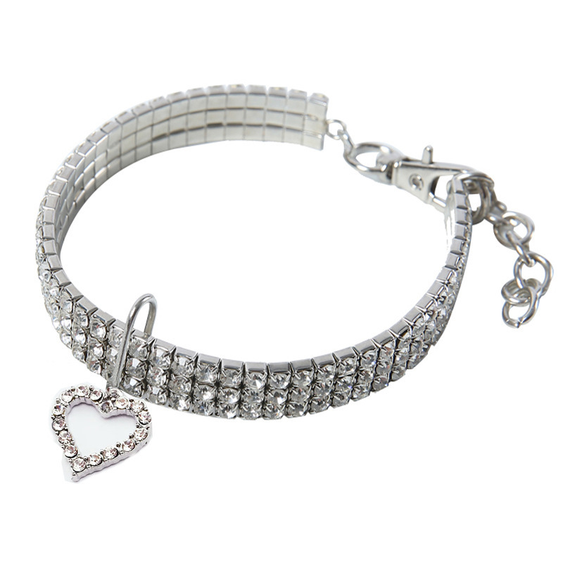 시인 푸드로이드 라인스톤 애완동물 목걸이 하트 모양 장식품 강아지 고양이 크리스탈 다이아몬드 하트 펜던트스토어 가기