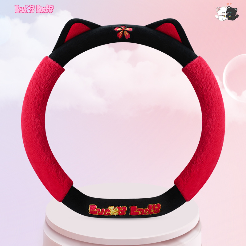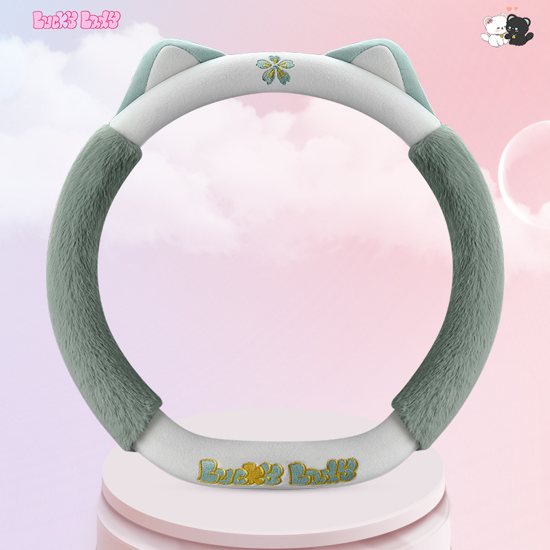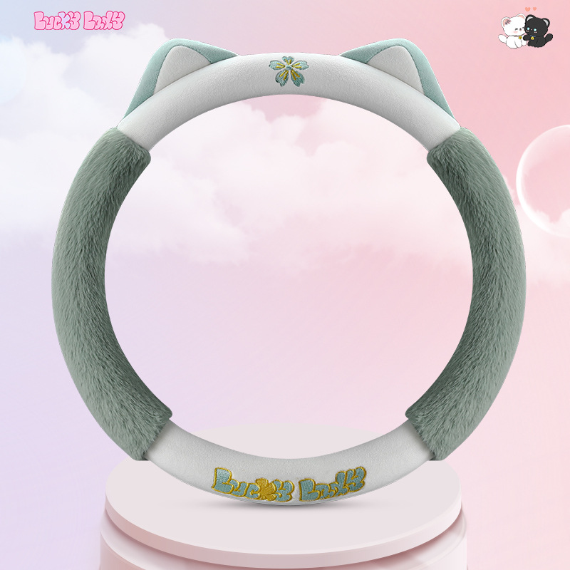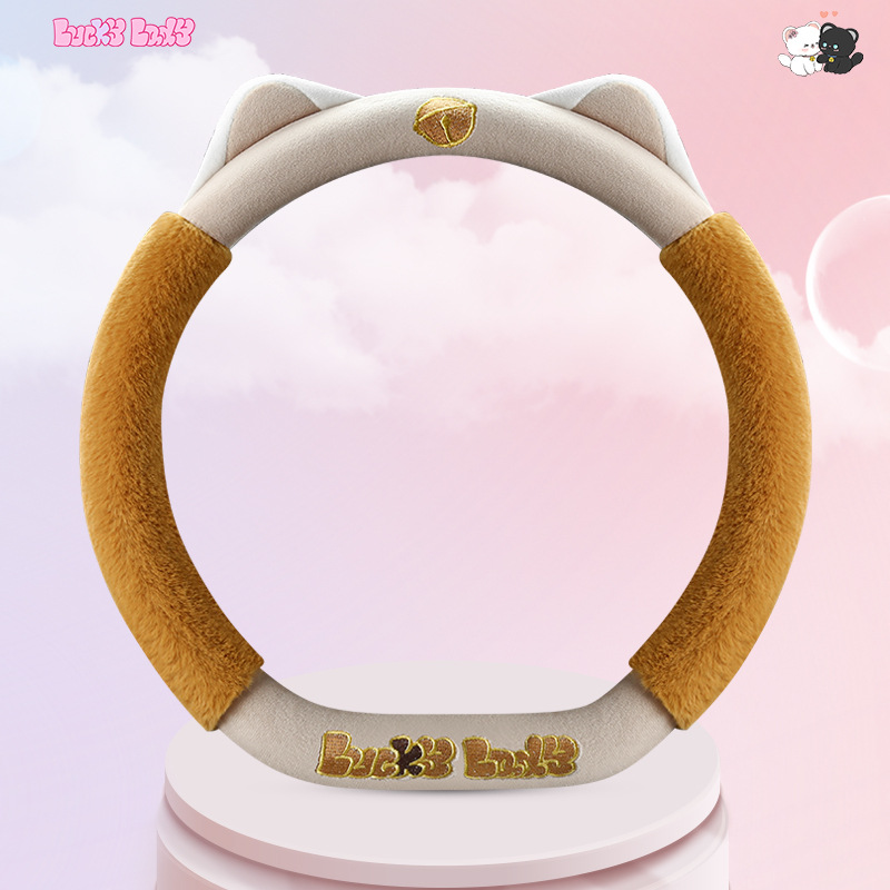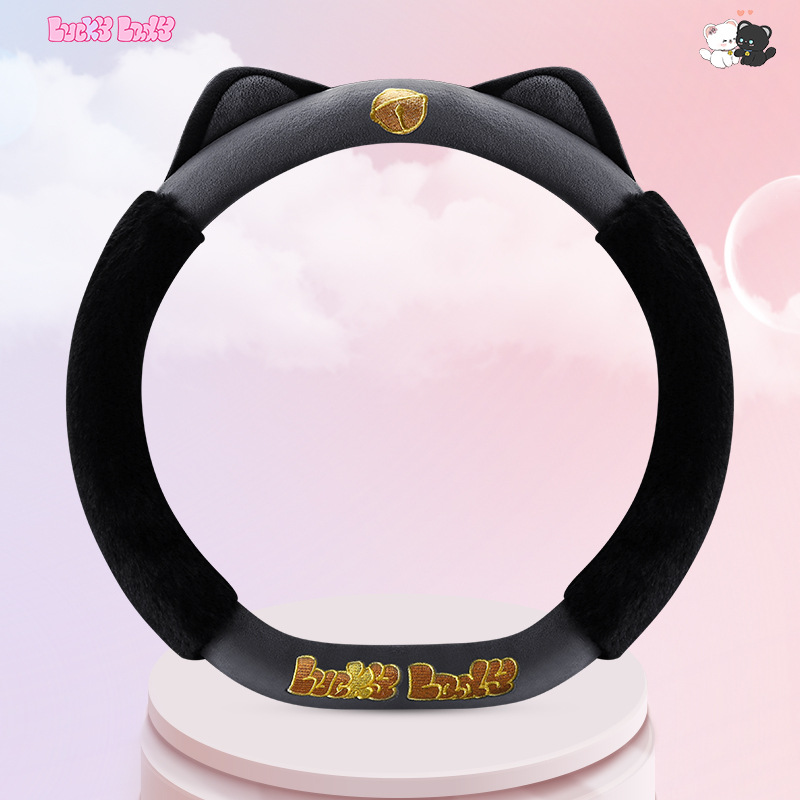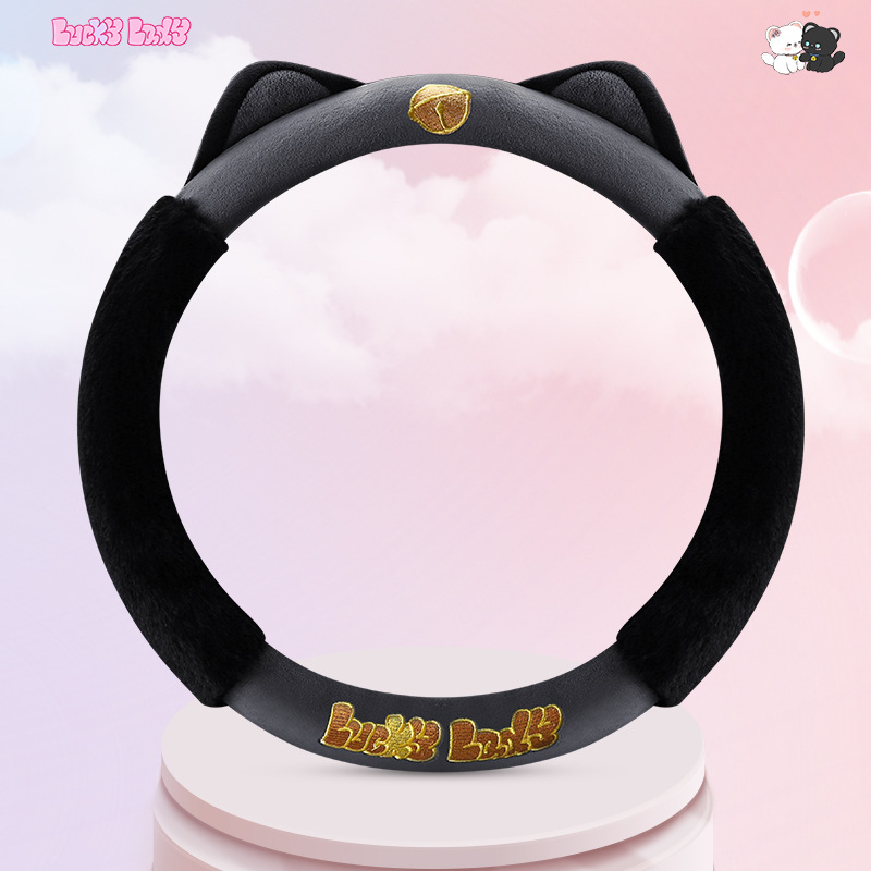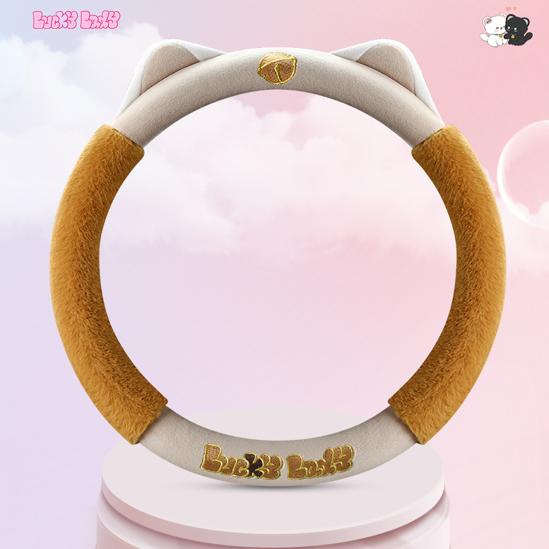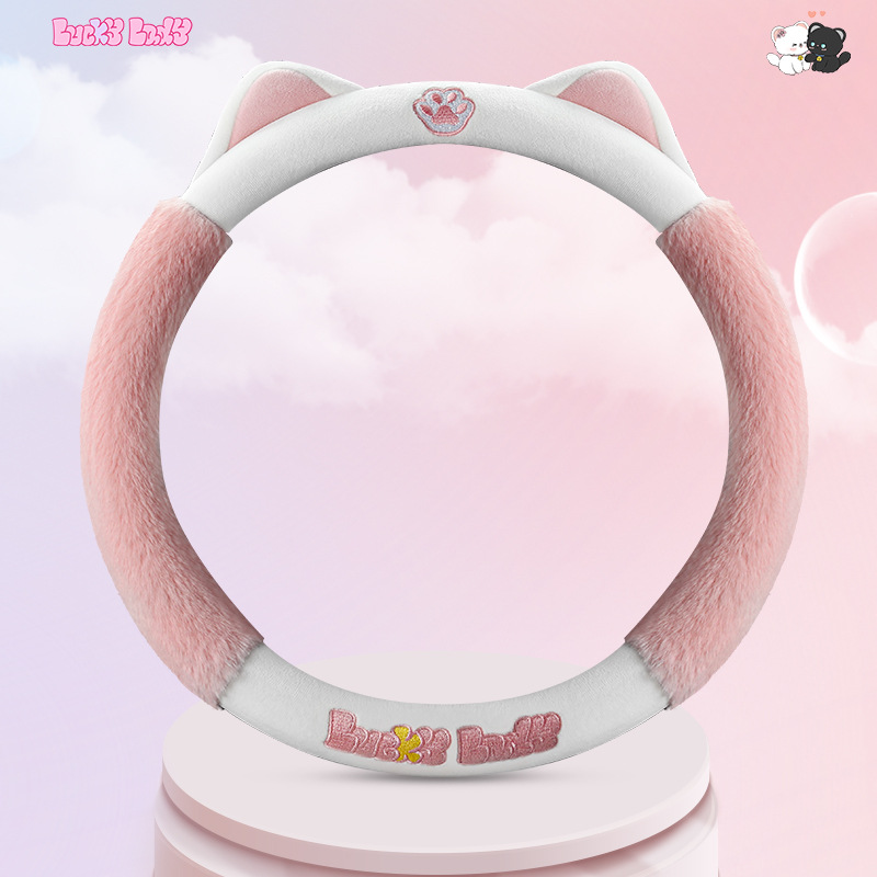 새로운 만화 독특한 스티어링 휠 커버 여성의 귀여운 달콤한 고양이 따뜻한 짧은 벨벳 가을과 겨울 유니버설 스티어링 휠 커버