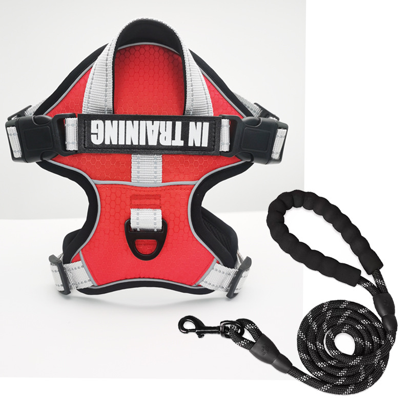 • [가슴 등 + 1.5 m 검정 견인 로프] 레드와 블랙