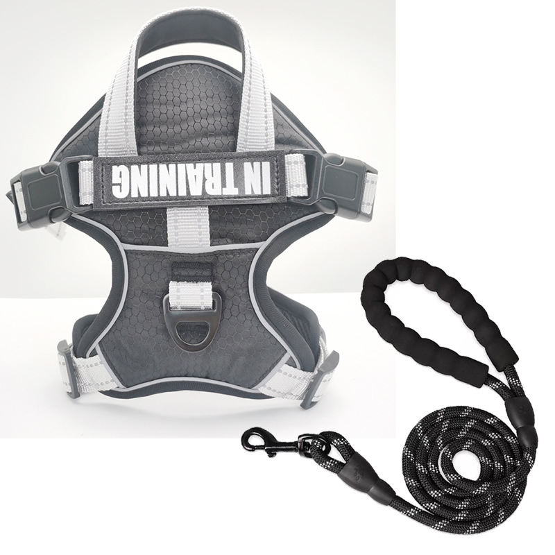 • [가슴 등받이 + 1.5 m 블랙 트랙션 로프] 레이크 블루와 그레이
