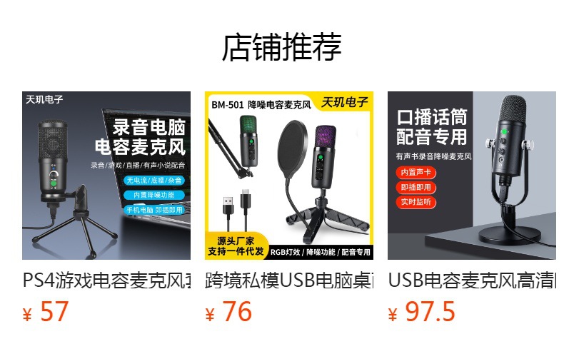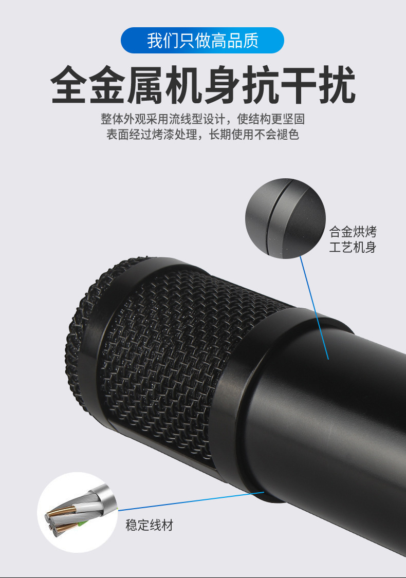BM800 콘덴서 마이크 오디오 소설 더빙 가정용 라이브 컴퓨터 녹음 케이블 마이크 크로스 보더 핫 세일스토어 가기