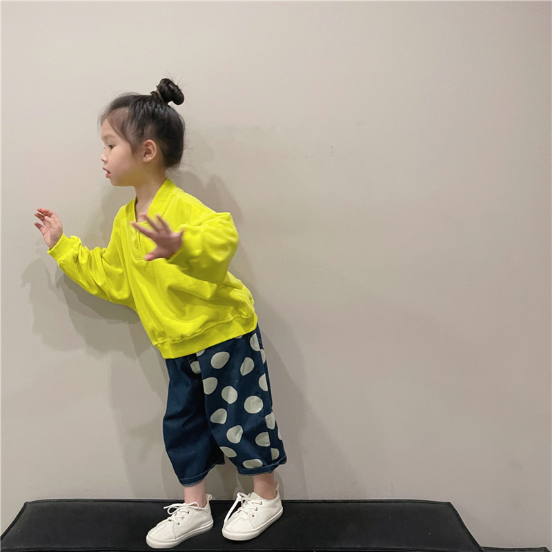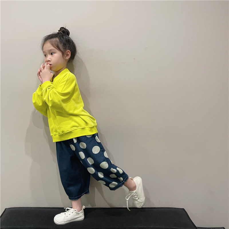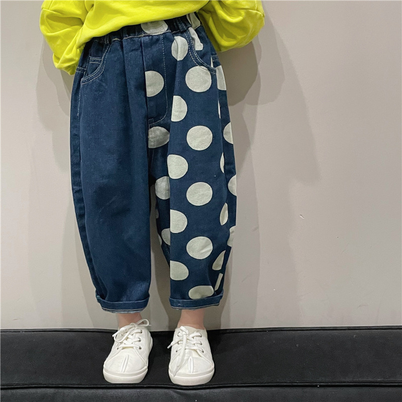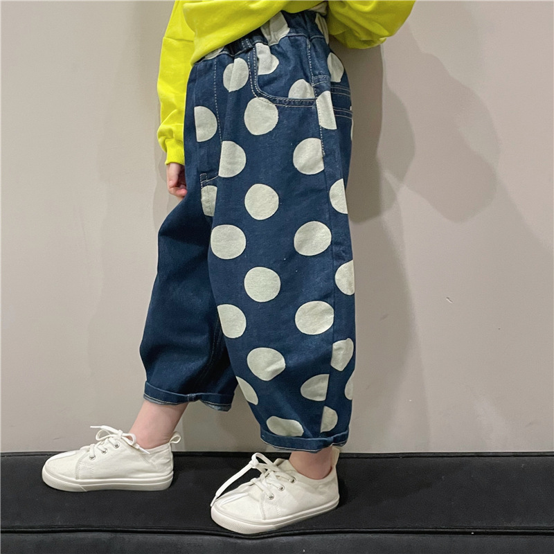 아동복 아동 바지 2023 봄 새로운 한류 포인트 청바지 서양식 베이비 컬러 매칭 캐주얼 바지 K315스토어 가기