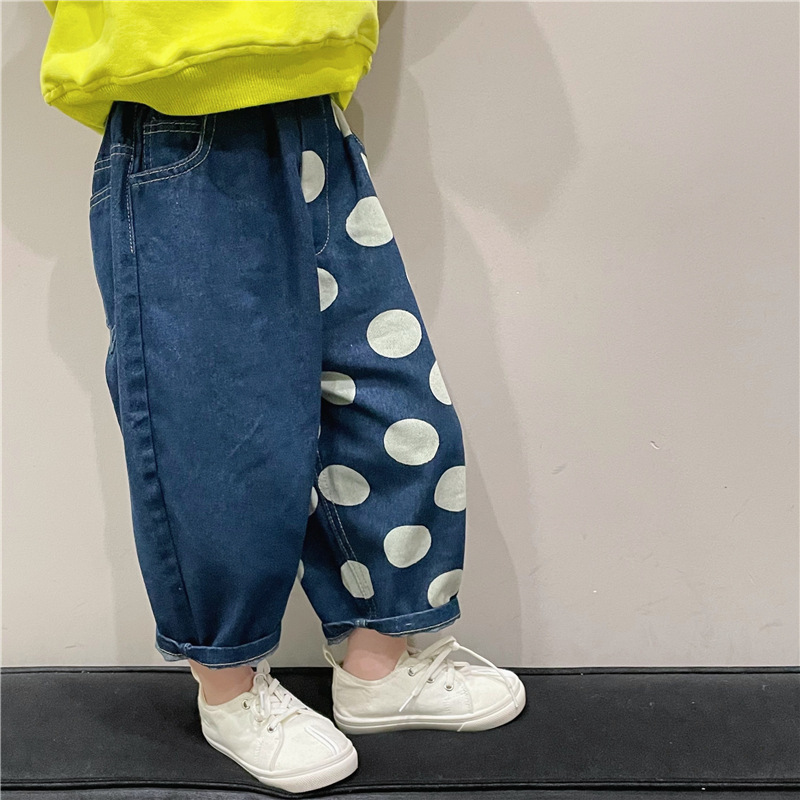 아동복 아동 바지 2023 봄 새로운 한류 포인트 청바지 서양식 베이비 컬러 매칭 캐주얼 바지 K315