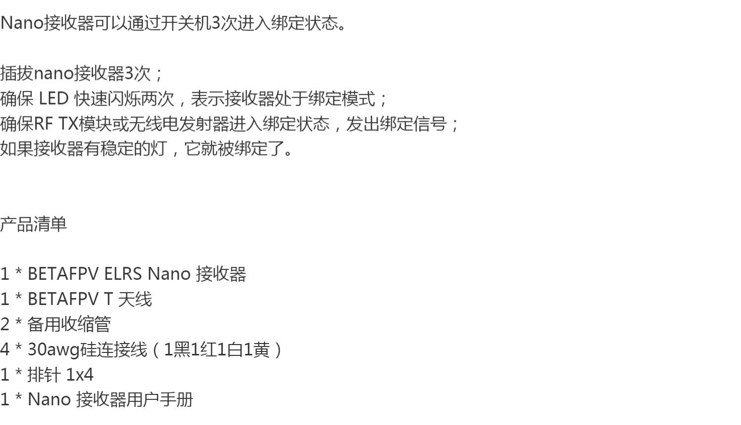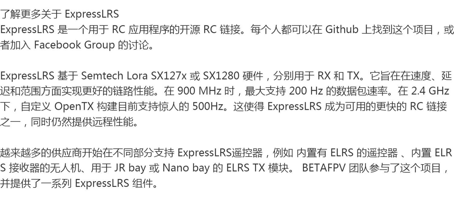 BETAFPV Nano 接收器基于 ExpressLRS 项目,RC 应用程序的开源 RC 链接。 ExpressLRS 旨在在速度、延迟和范围方面实现更好的链路性能。 这使得 ExpressLRS 成为可用的更快的 RC 链接之一,同时仍然提供远程性能。