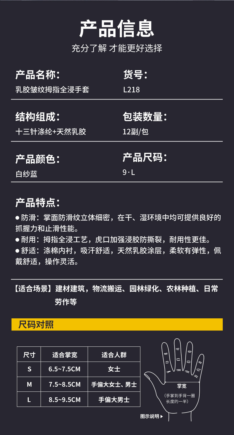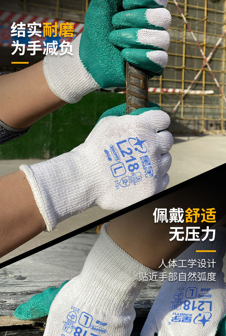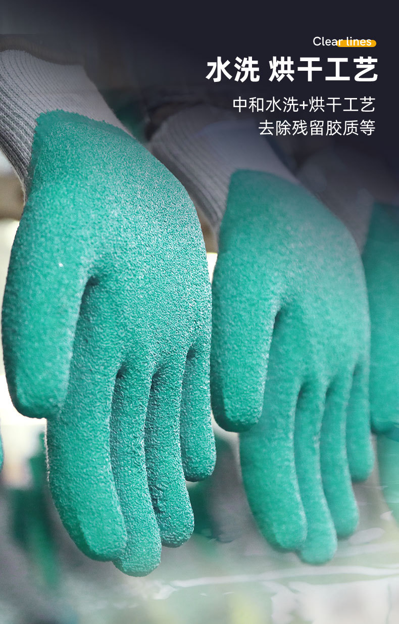 노동 장갑 라텍스 라인 주름진 면사 내마모성 미끄럼 방지 사이트 디핑 작업 고무 보호 고무 장갑스토어 가기