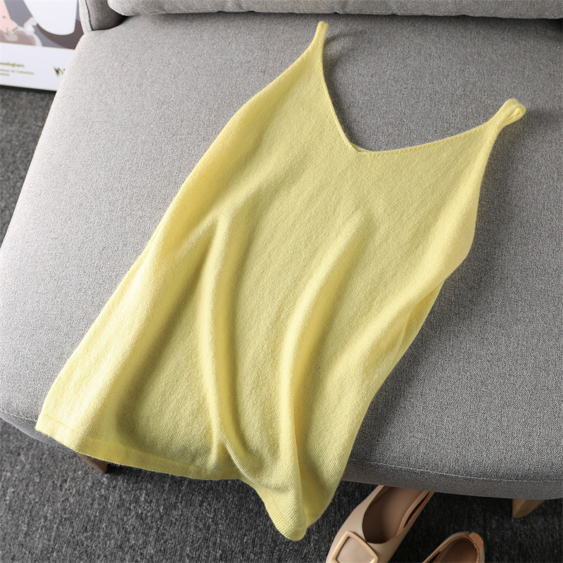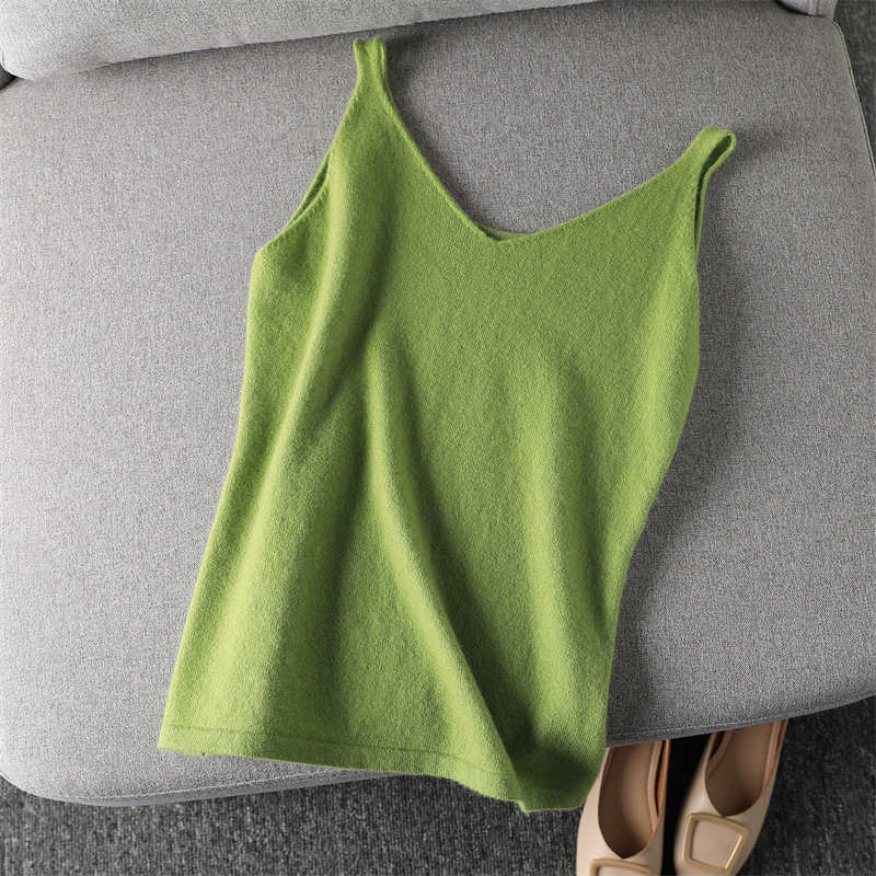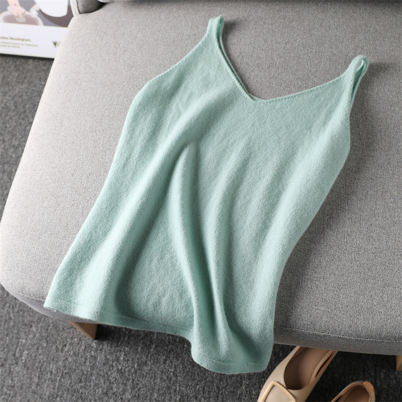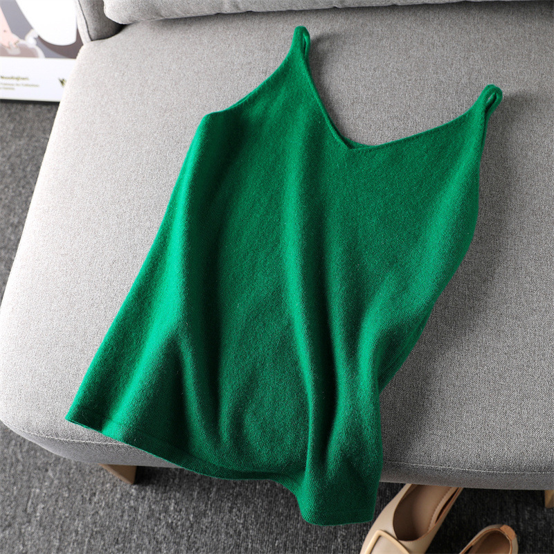양모 니트 캐미솔 여성용 브이넥 가을 겨울 짧은 민소매 이너웨어 심플하고 다용도